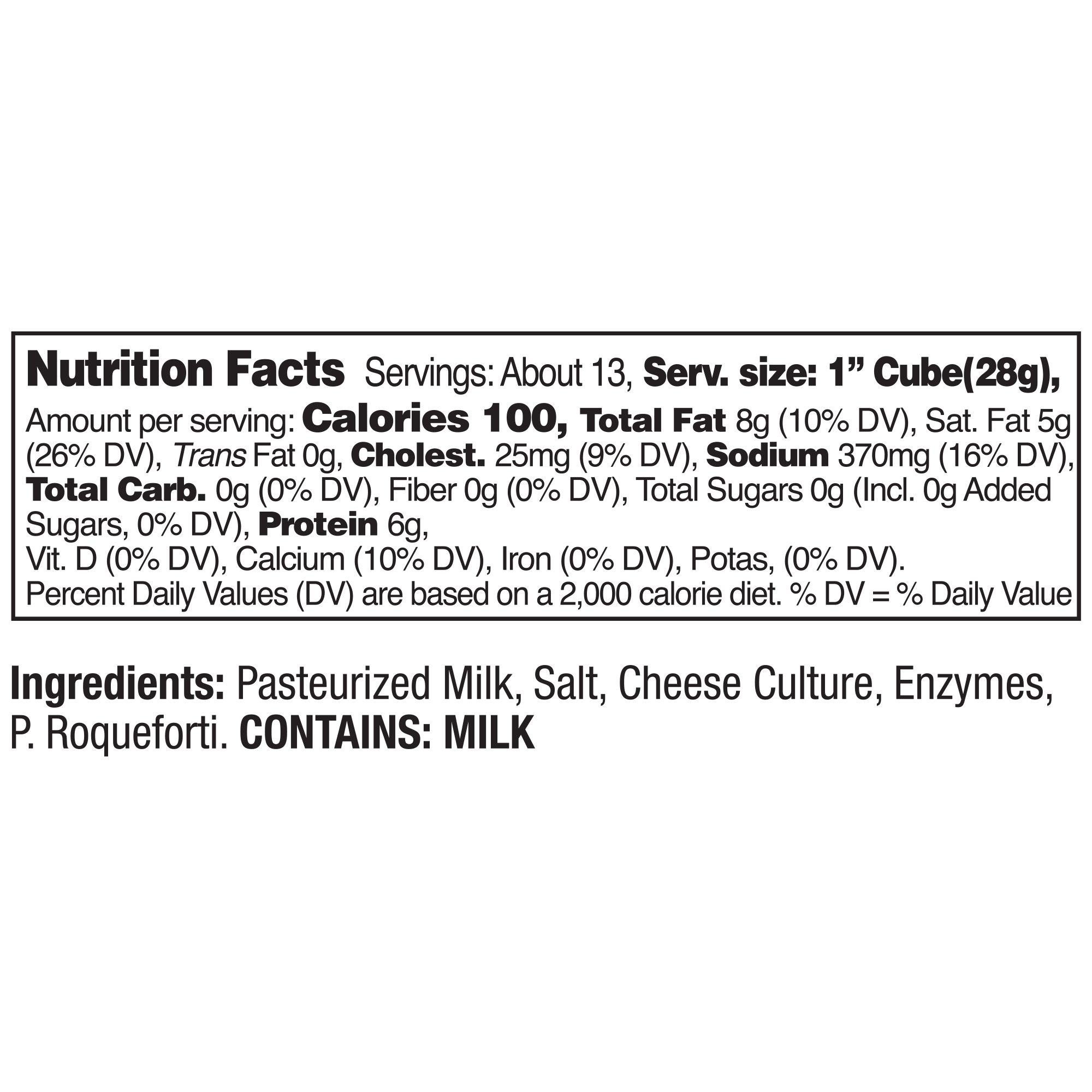 Ingredients: Pasteurized Milk, Salt, cheese culture, Enzymes, P. Roqueforti