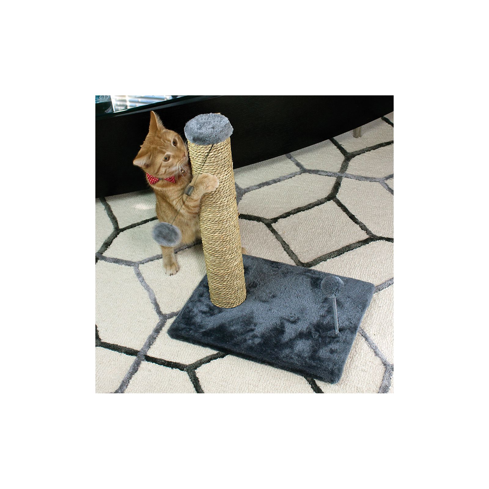 Natural seagrass fiber scratching posts help keep nails healthy Durable, long lasting construction Toys will engage your feline to play and hunt Help your cat express their natural instincts while saving your furniture Includes 20" sea grass scratching post with spring toy - 2pk.