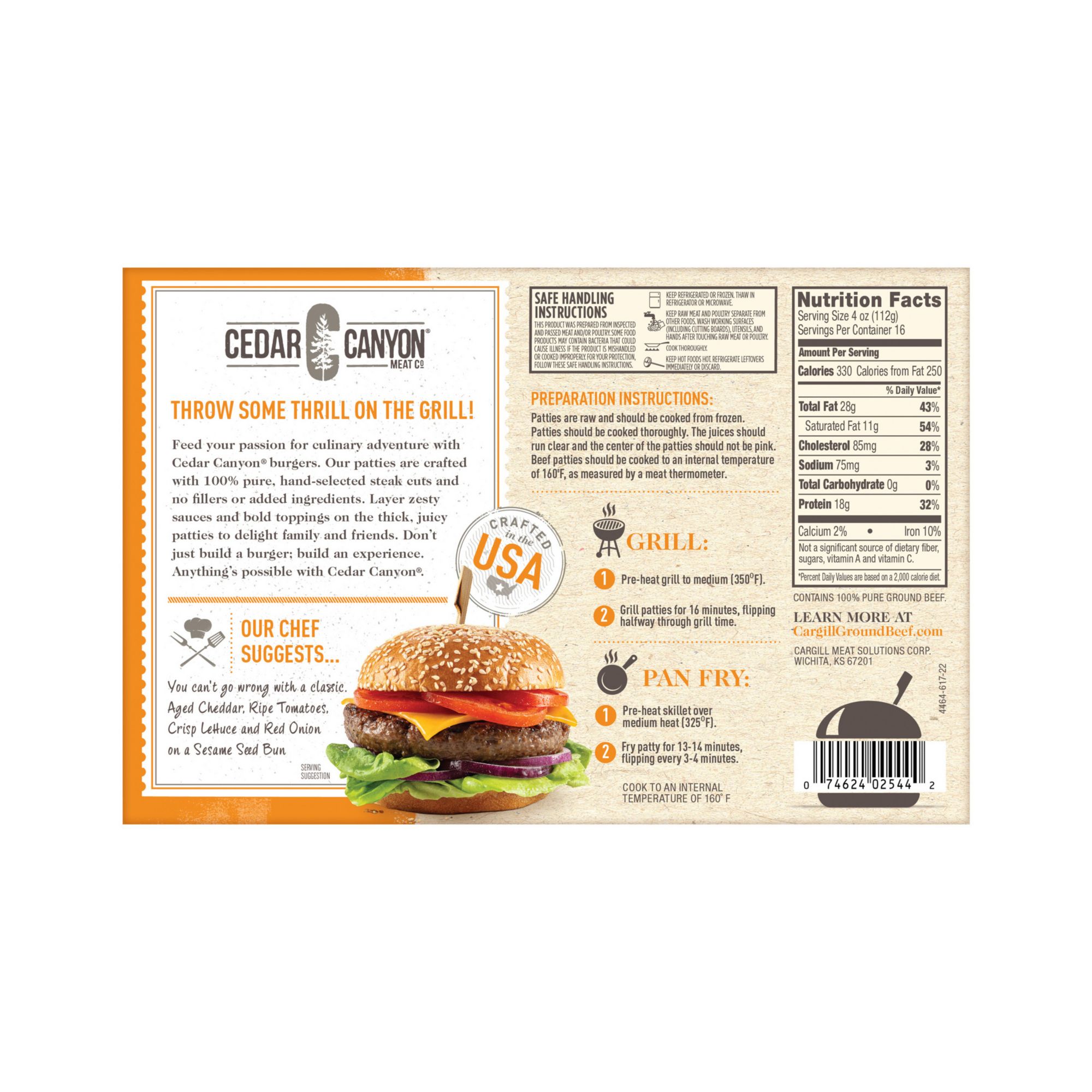 Cedar Canyon 100% Pure All Beef Patties, 16 ct./0.25 lbs.