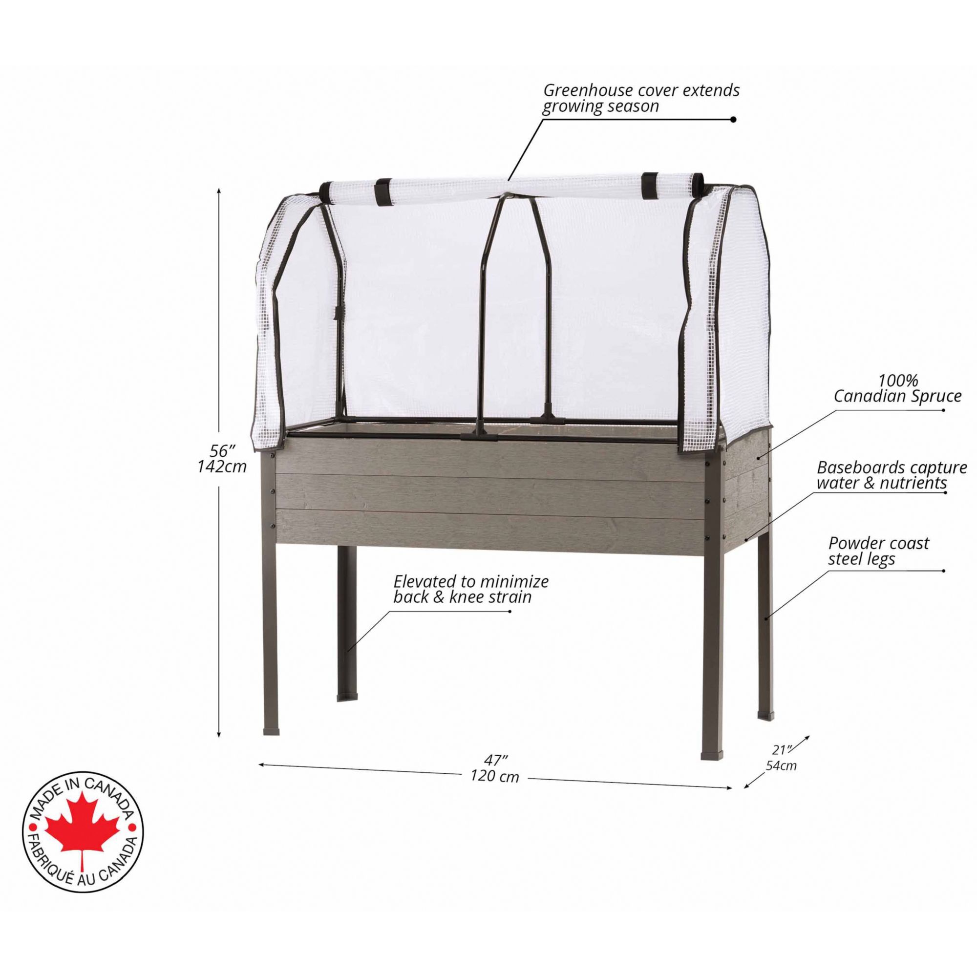 CedarCraft Elevated Spruce Planter with Greenhouse Cover - Gray