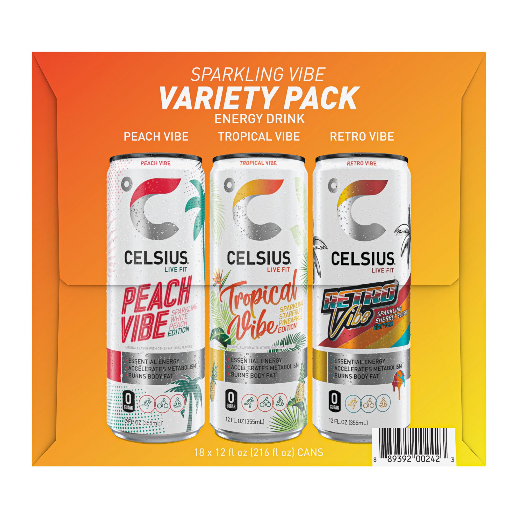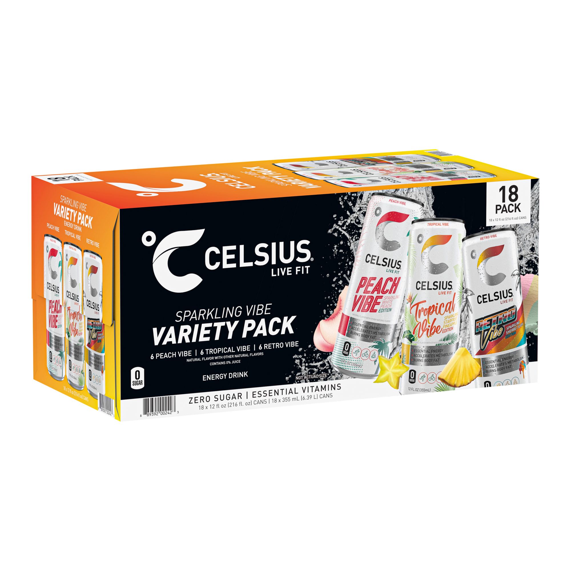 Celsius Sparkling Vibe Variety Pack, Functional Energy Drink, 18 pk./12 fl. oz.