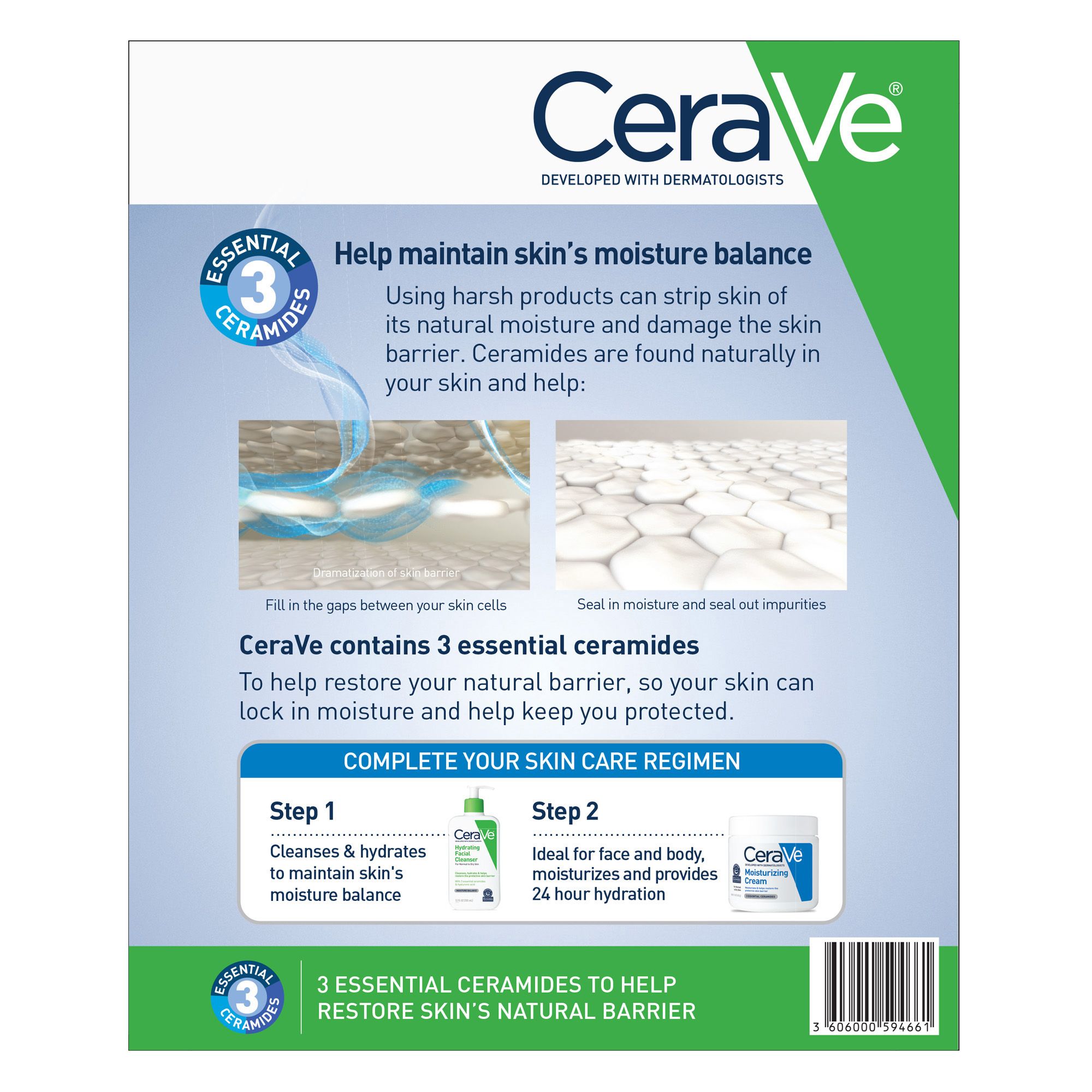Developed with dermatologists Non-drying cleanser Hydrates abd restores natural skin barrier Fragrance and paraben free Includes CeraVe Hydrating Cleanser, 2 pk./12 oz.