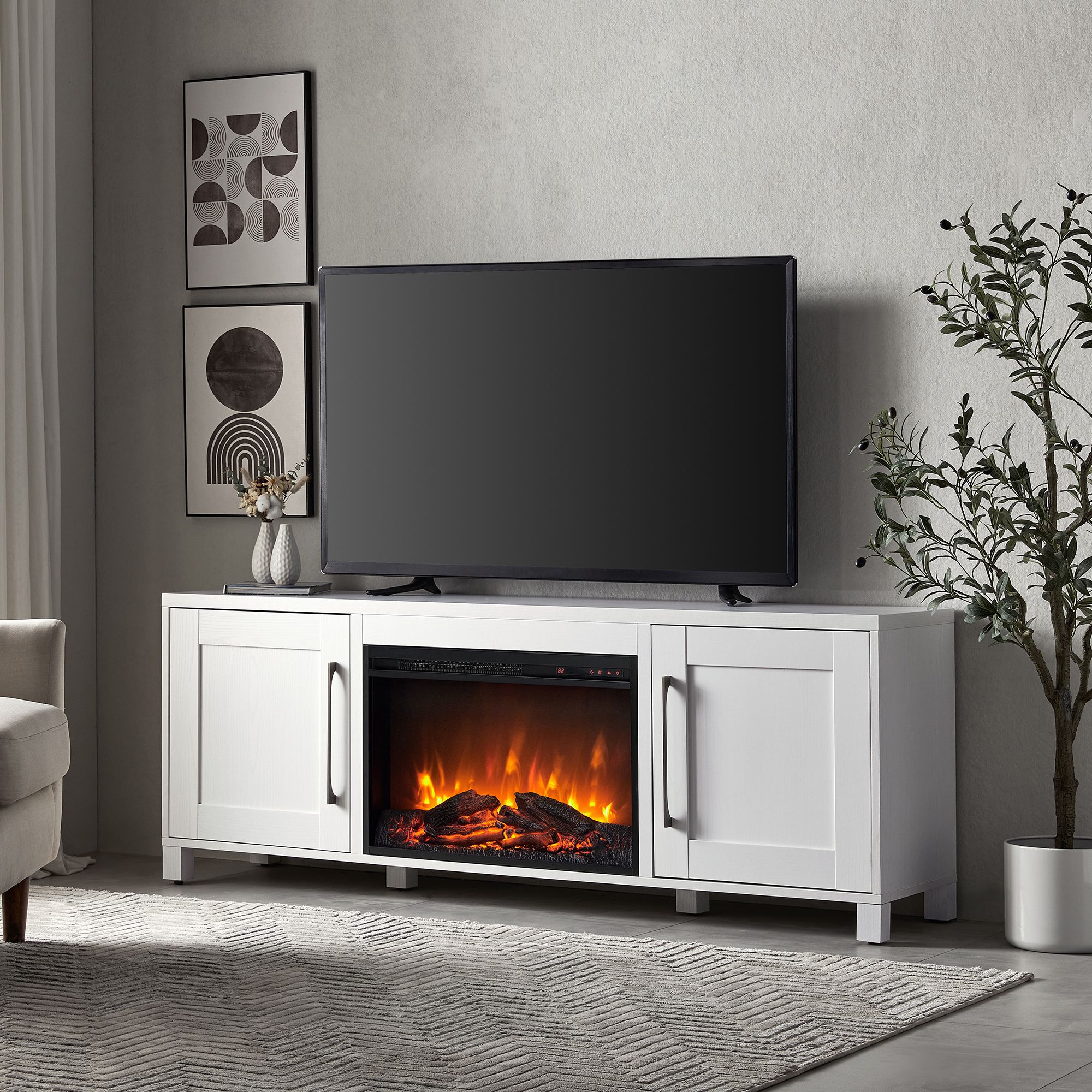 Chabot Rectangular TV Stand for TV's up to 75" with 26" Log Fireplace