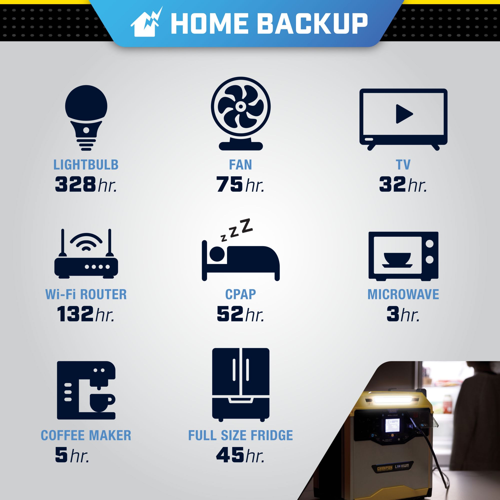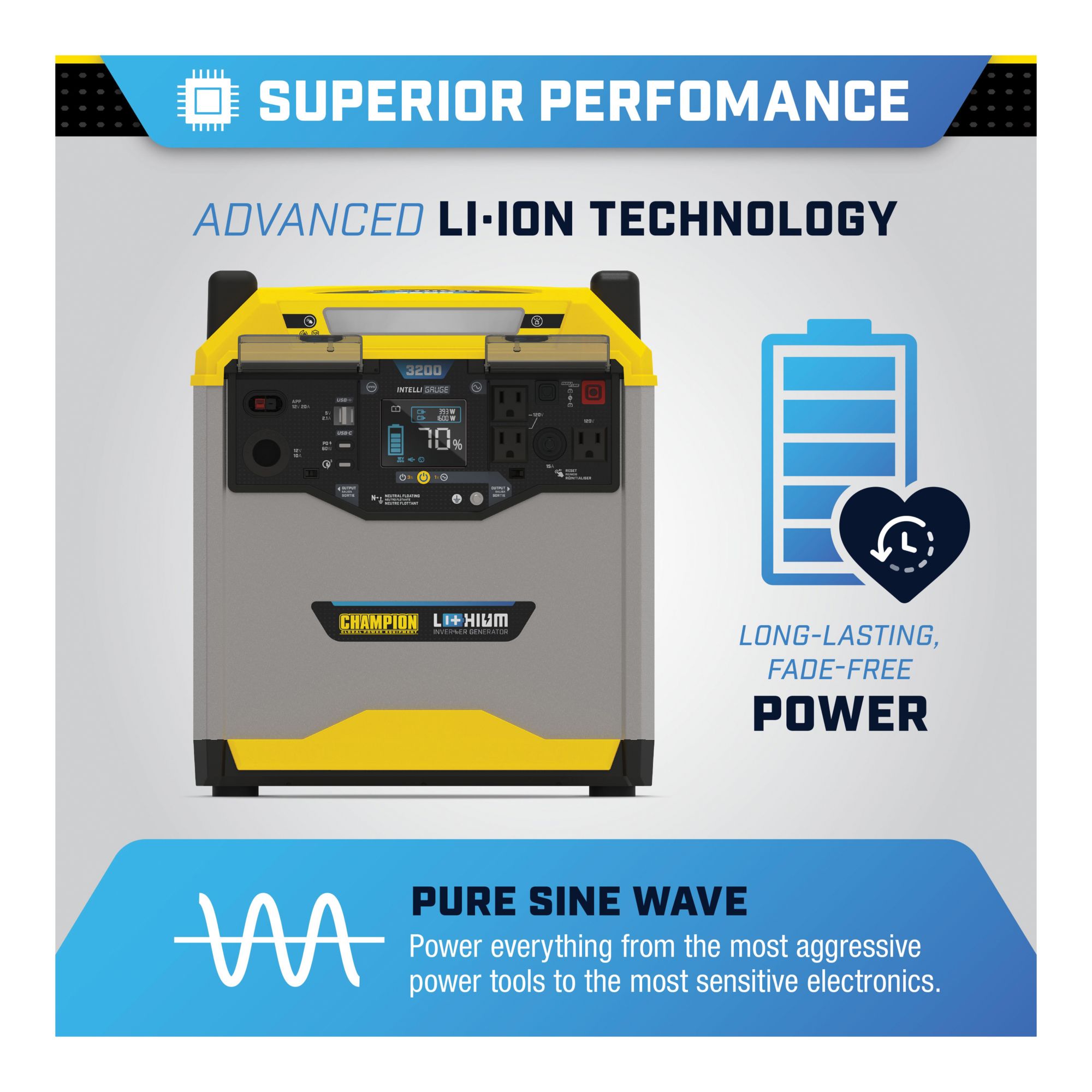 Champion 3276-Wh 3200W Starting/1600W Lithium-Ion Backup Battery for Solar Generator Portable Power Stations