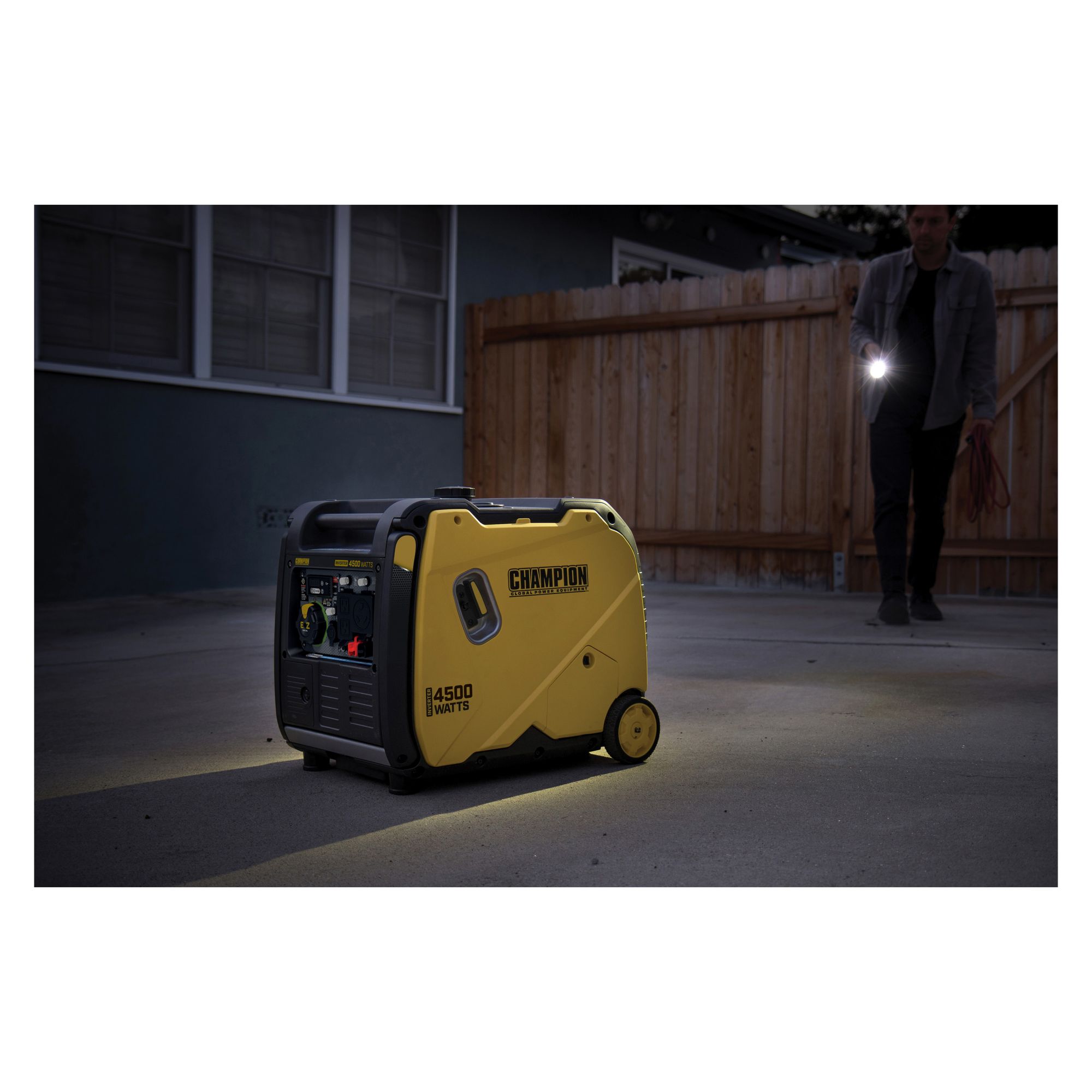 Champion’s EZ Start Dial makes getting started quick and easy. Featuring Cold Start Technology, extended run time, and an easy-to-read fuel gauge, the reliable 212cc Champion engine produces 4,500 starting watts and 3,500 running watts, and runs for 14 hours at 25% load when the 2.3-gallon fuel tank is full.