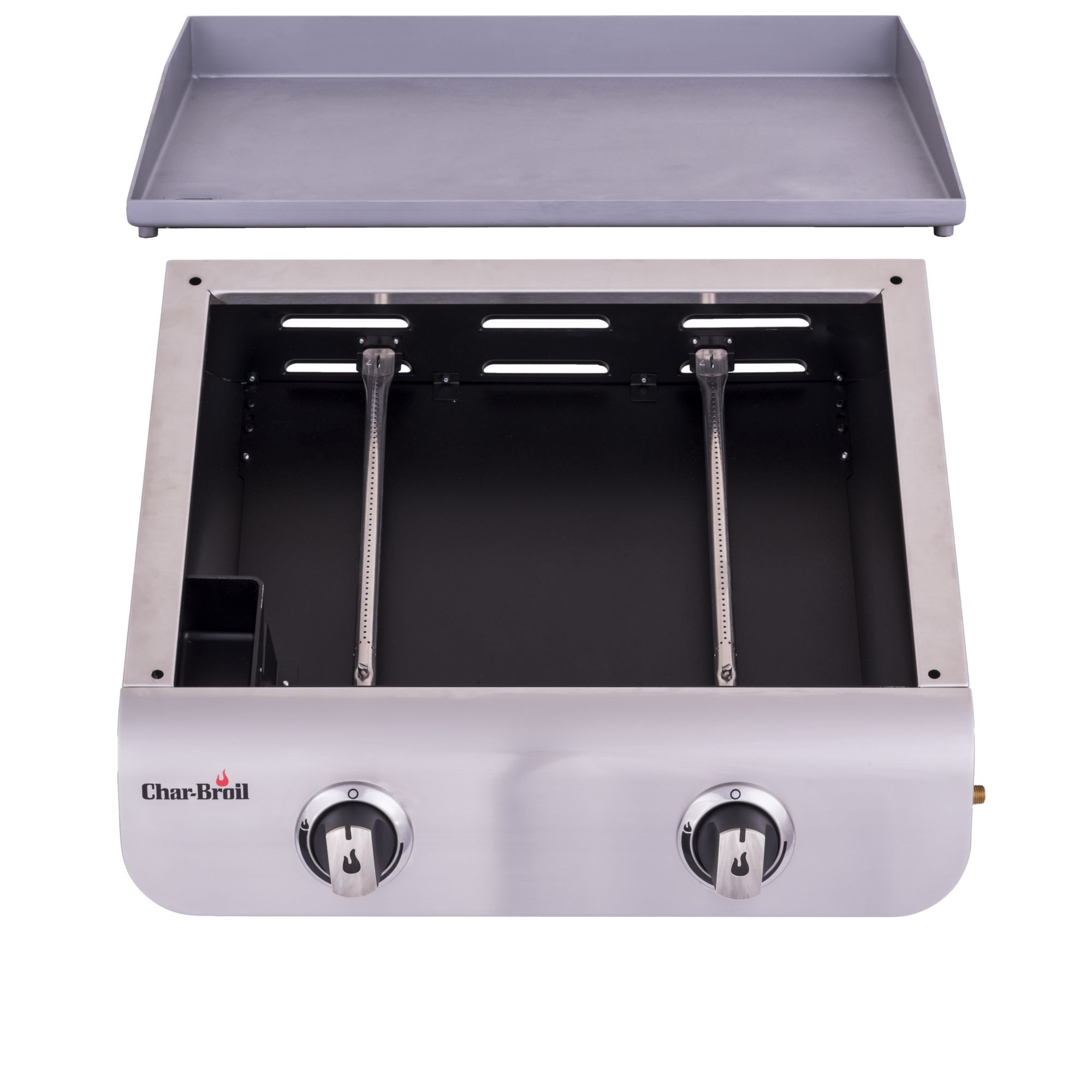 - Includes two-burner gas griddle