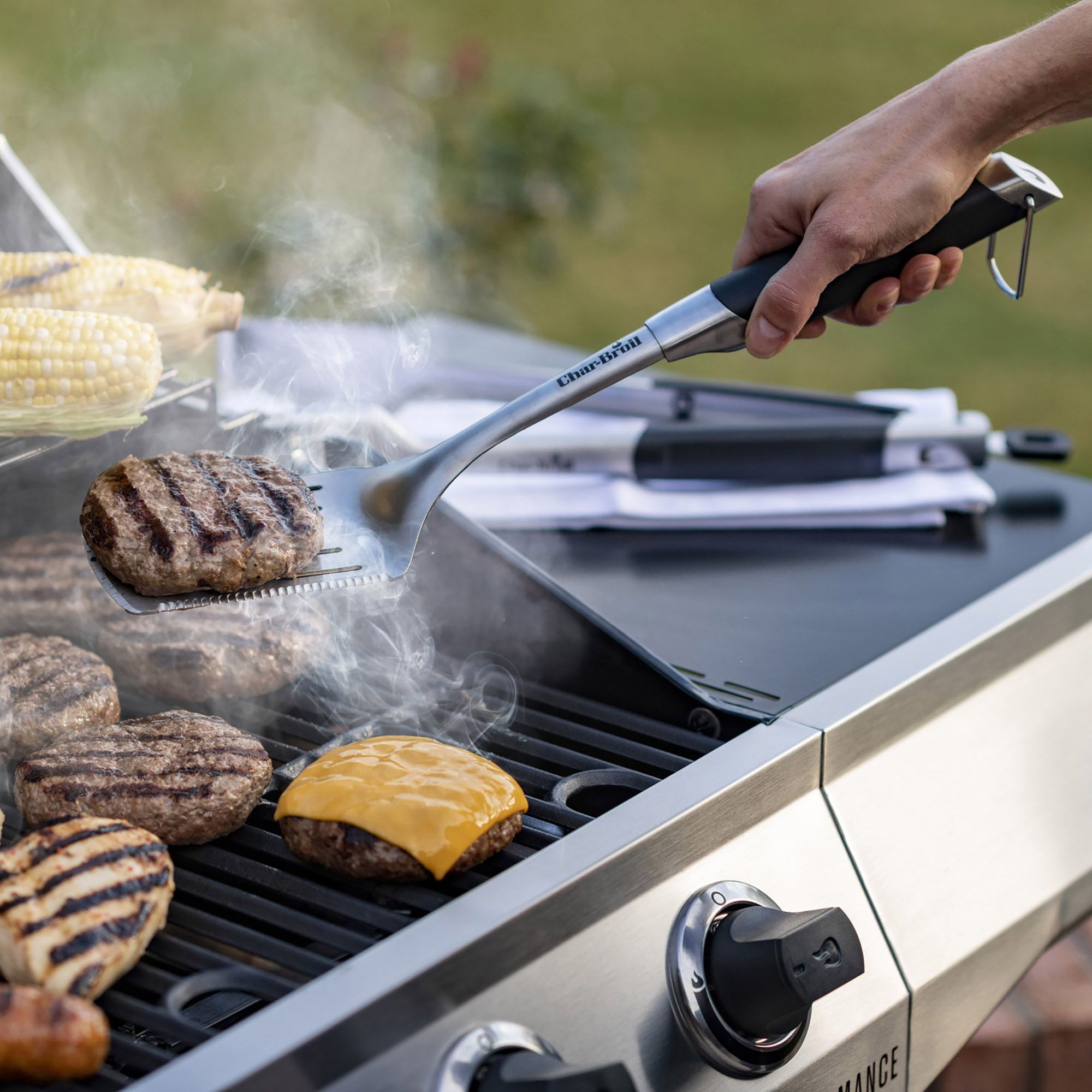 435 sq. in. of primary cooking space, plus a side burner