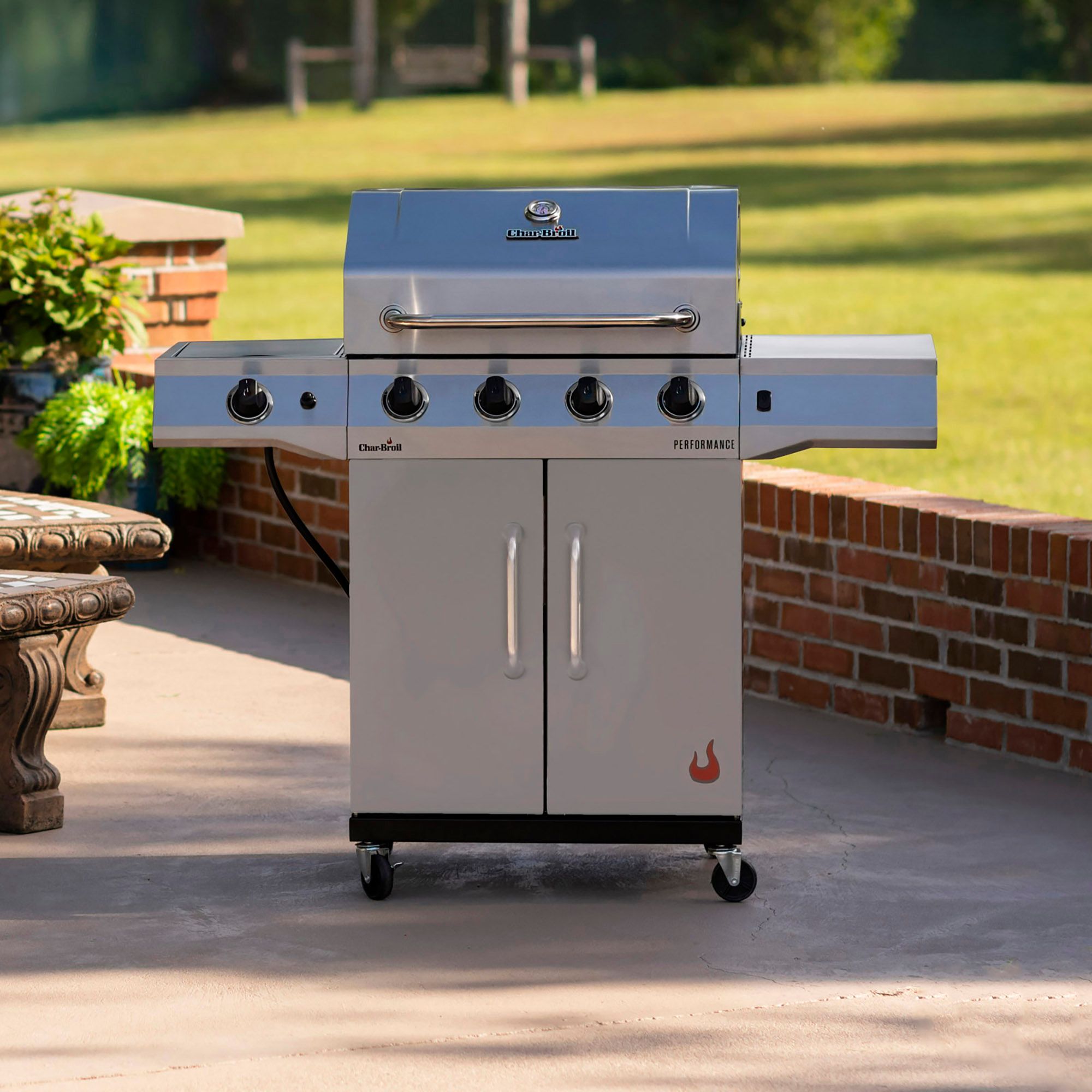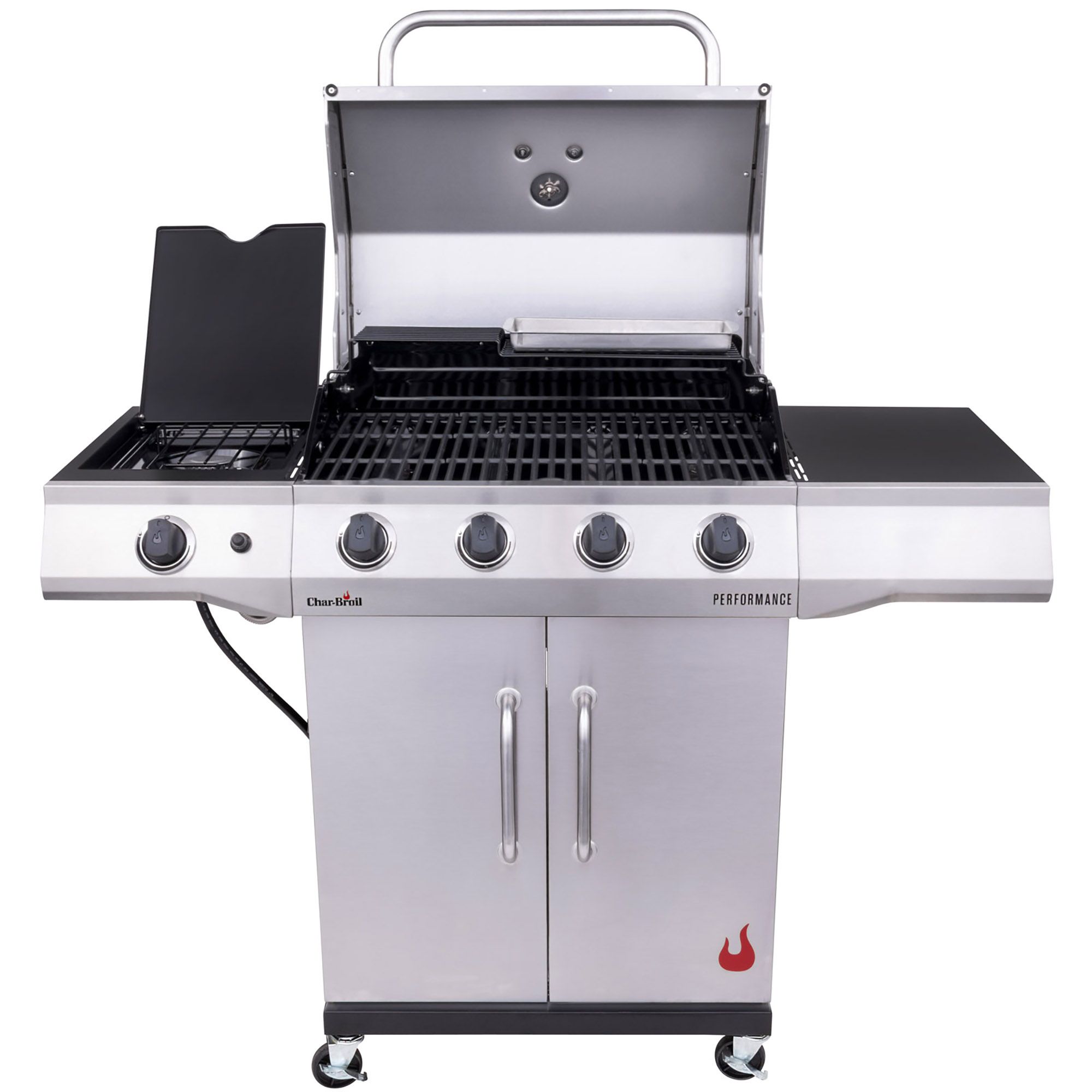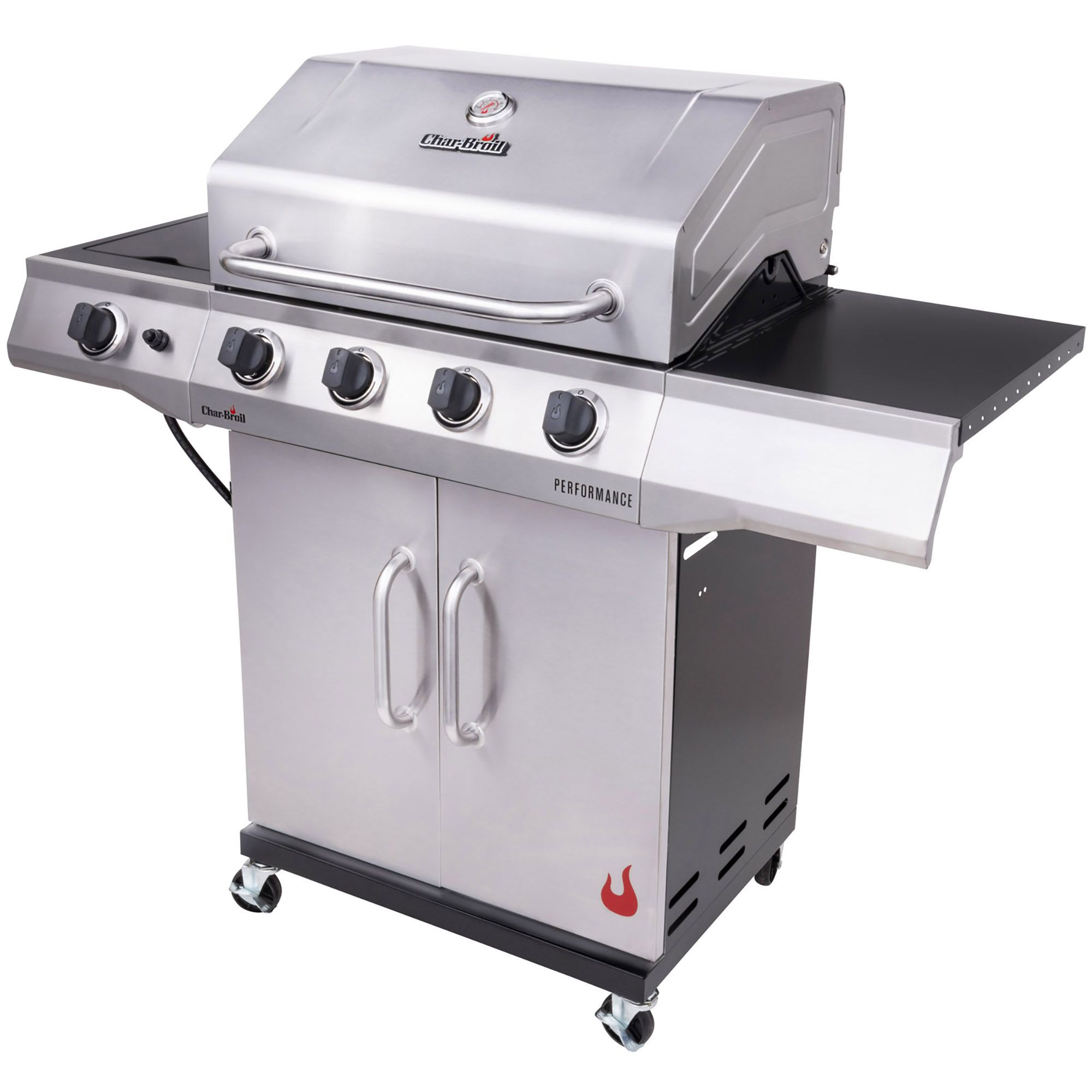 The Char-Broil Performance Series 4-Burner Gas Grill is versatile, reliable and equipped with everything you need to get the good times going. With 435 sq. in. of primary cooking space and a side burner, you'll have plenty of room to grill a variety of food. We included the Chef's Delite tray to cook your most delicate foods and equipped the side shelves to work with Gear Trax accessories for a more organized workspace. It’s easy to assemble and equipped with electronic ignition to ensure reliable starts and a sleek upgraded design, with LED-illuminated control knobs, for classic good looks.