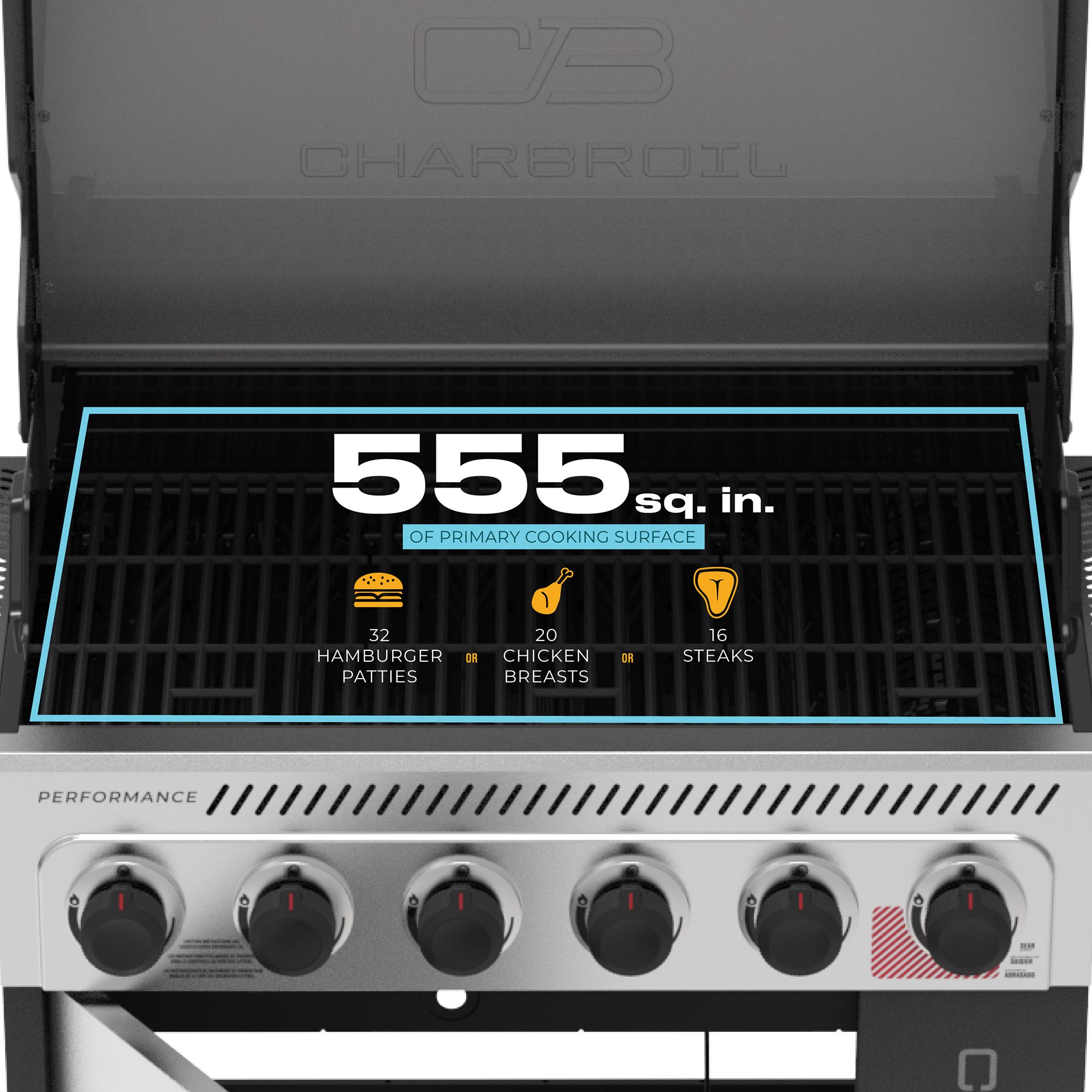 Cooking area: Enjoy 555 sq. in. of cooking space to grill up to 30 burgers at a time. Easily multitask with the 170 sq in. swing away warming rack to cook with indirect heat or to keep food warm