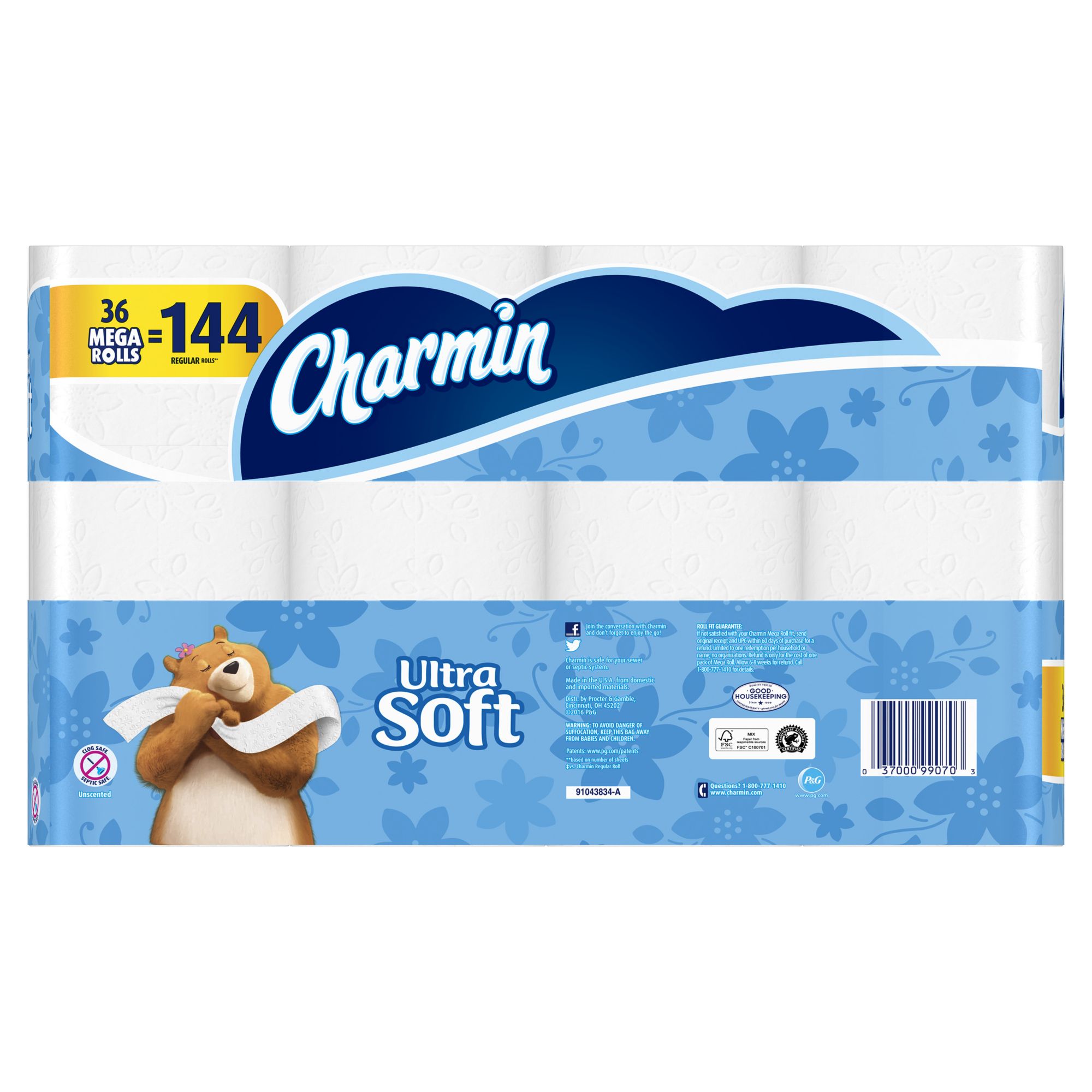 Charmin Ultra Soft Mega Roll toilet paper is the softer way to get clean, in a roll that lasts longer. It has comfort cushions that are softer and 75% more absorbent so you can use less. Charmin Ultra Soft Mega Roll toilet paper is 2-ply and also septic-safe. We all go to the bathroom, those who go with Charmin Ultra Soft Mega Roll toilet paper really Enjoy the Go.