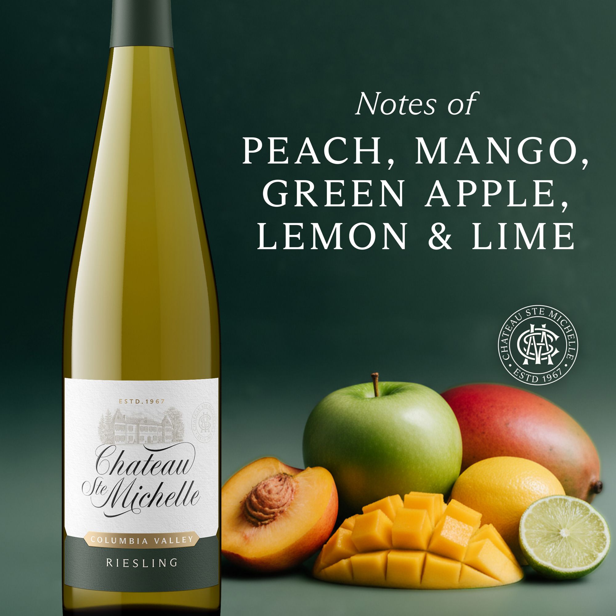 Treat yourself to a bottle of Chateau Ste. Michelle Columbia Valley Riesling and experience the chateau wherever you go! A refreshing white wine with a crisp and fruity taste, this medium-bodied dry Washington Riesling is crafted for freshness and balance. Bright flavors of white peach, green apple, mango and lemon-lime bring a fruit character to this bottle of wine that is balanced with subtle mineral notes and lovely floral aromas. Made in Washington State's renowned Columbia Valley with grapes from multiple vineyard lots, this Riesling is a complex, layered blend, indicative of the region, with the 2020 vintage earning 90 points from Wine Enthusiast, September 2021. Chateau Ste. Michelle Columbia Valley Riesling is a flavorful, food-friendly Riesling wine. Add a touch of elegance to weeknight dinner with a glass of white wine, or elevate a relaxing picnic with this bright and crisp bottle of wine. These bottles are easy to take with you for any occasion, ideal for serving with grilled seafood, mussels or spicy Korean chicken wings. Wine bottles are 750 ml and have an 12% ABV. The Columbia Valley Riesling comes from Chateau Ste. Michelle, known for their renowned Riesling grapes. Since 1967, the dedicated winemakers at Chateau Ste. Michelle have transformed the finest grapes into some of the most spectacular wines in the world. At Chateau Ste. Michelle, the experience of Washington State's inviting elegance and sophistication is in everything we do. Championing craftsmanship and creativity to provide a sense of wonder in every bottle. Chateau Ste. Michelle winery owns 3,500 acres in the Columbia Valley of eastern Washington, including Horse Heaven, Canoe Ridge Estate and Cold Creek vineyards.