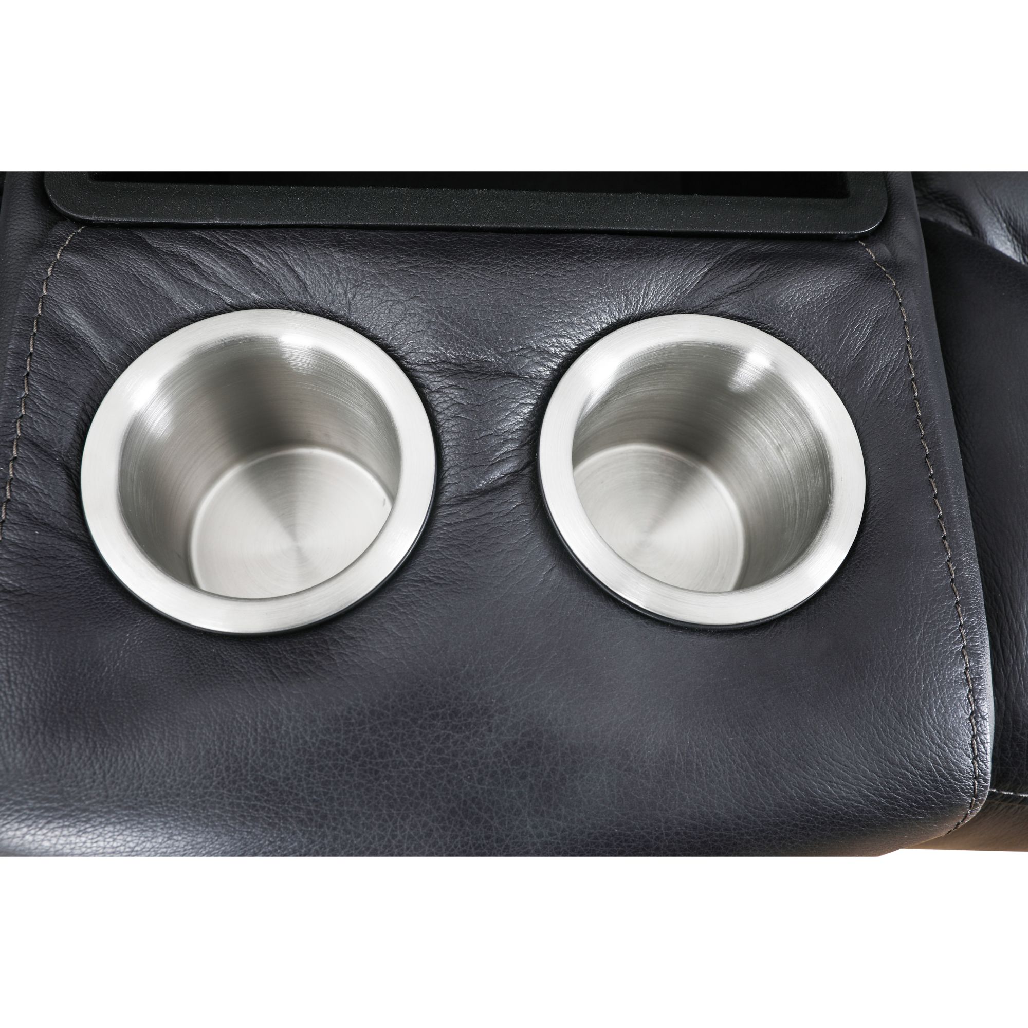Full sized stainless steel removable cup holders in console