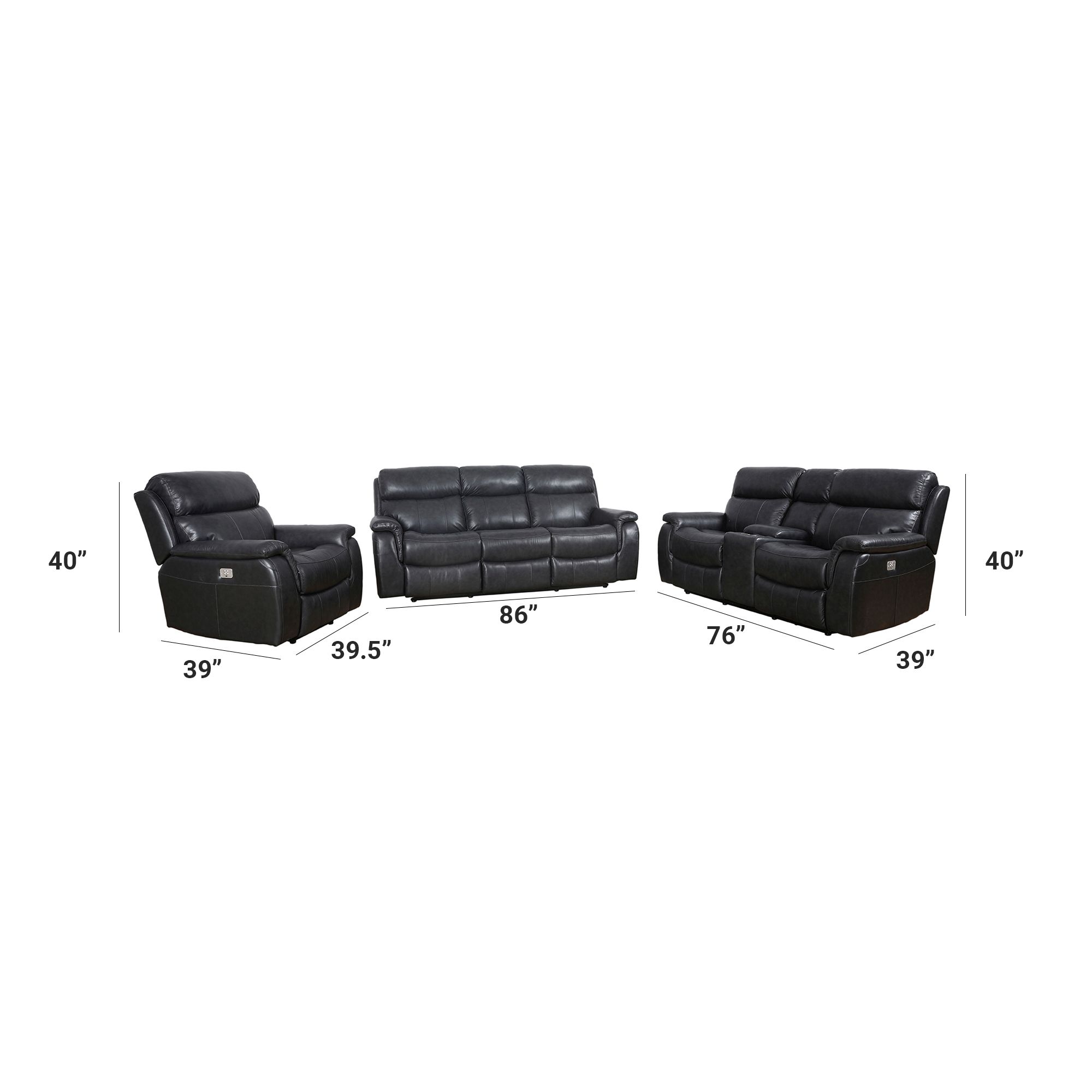 Recliner: H 40’’, D 39.5’’, L 41’’
