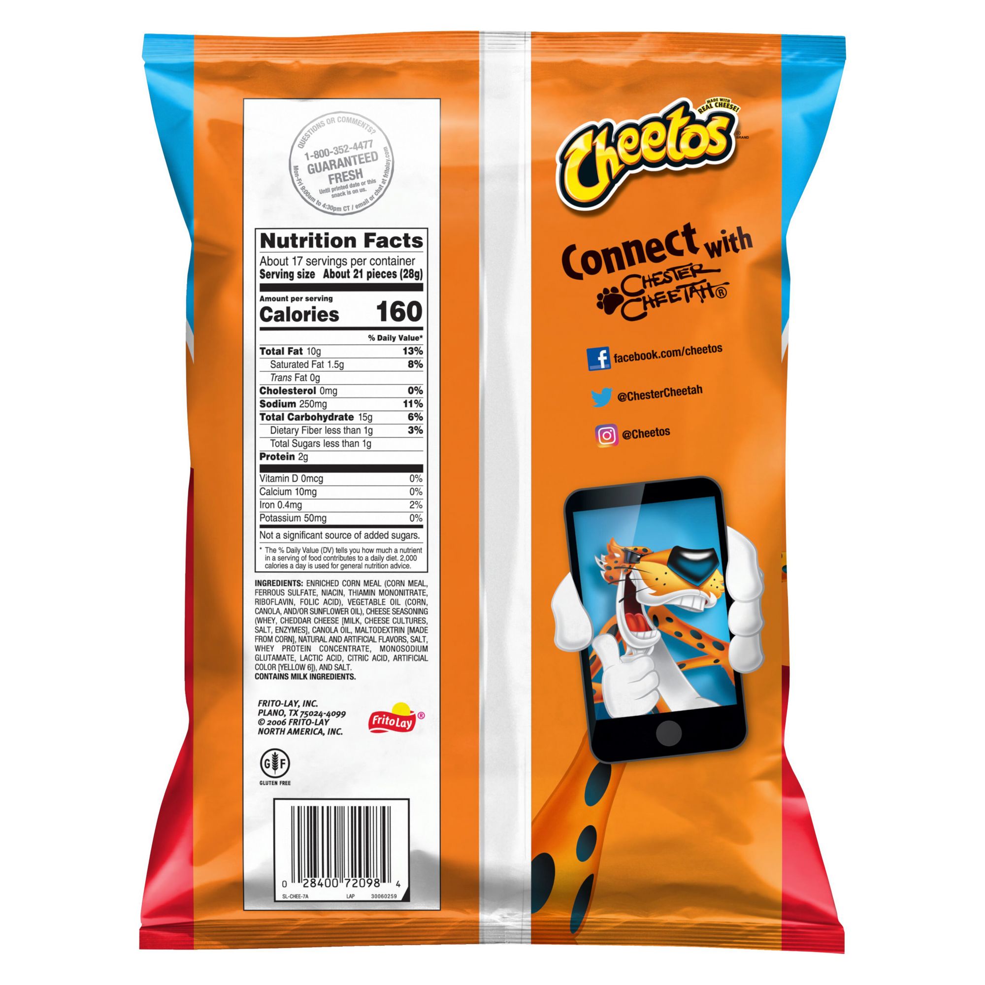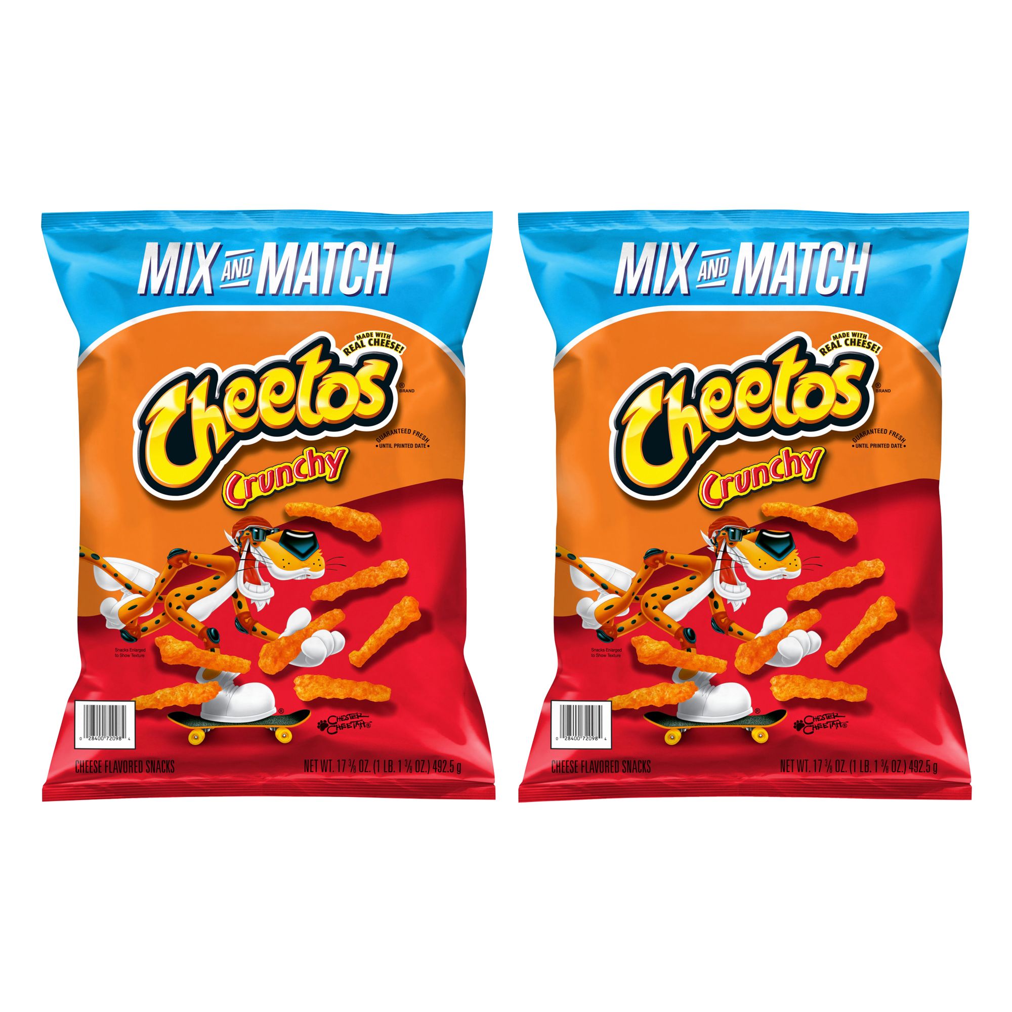 Cheetos snacks are the much-loved cheesy treats that are fun for everyone! You just can’t eat a Cheetos snack without licking the signature "cheetle" off your fingertips. And wherever the Cheetos brand and Chester Cheetah go, cheesy smiles are sure to follow. Bring a cheesy, delicious crunch to snack time with a bag of Cheetos Crunchy Cheese-Flavored Snacks. Made with real cheese for maximum flavor.