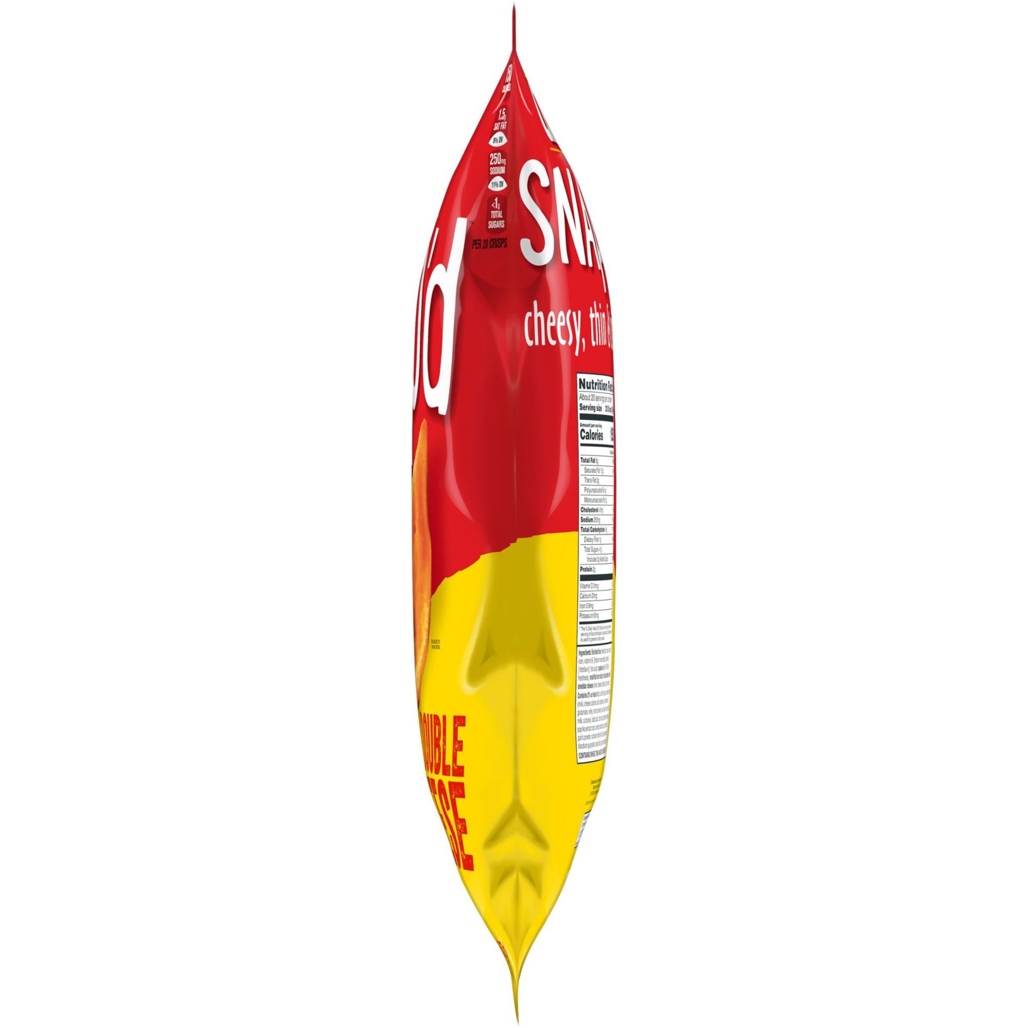 Make snack time more fun with Cheez-It Snap'd Double Cheese - the super thin and crispy cheesy baked snacks loaded with big cheese flavor. With 100% real cheese baked-in and sprinkled on top, Cheez-It Snap'd crackers are irresistibly cheesy. The Snap'd snacks are delightfully thin with a crispy snap for extra crunch in every bite. Cheez-It Snap'd snacks are perfect for celebrating game time, make a great addition to party spreads, cure late-night savory cravings and more - the cheesy options are endless. Pack your Snap'd snacks in school lunches or as an extra snack on-the-go. With double the cheesy zest for double the flavor and double the fun, this snack will tempt you with, ‘just one more bite.' You'll love the bold crunch and delicious, tasty flavor of real cheese in every perfectly-baked bite of Cheez-It Snap'd Double Cheese Cheesy Baked Snacks.