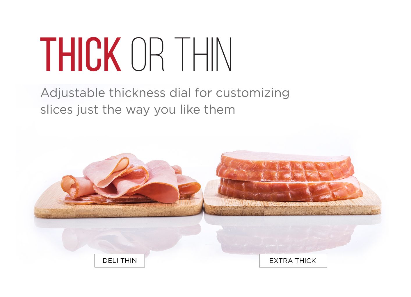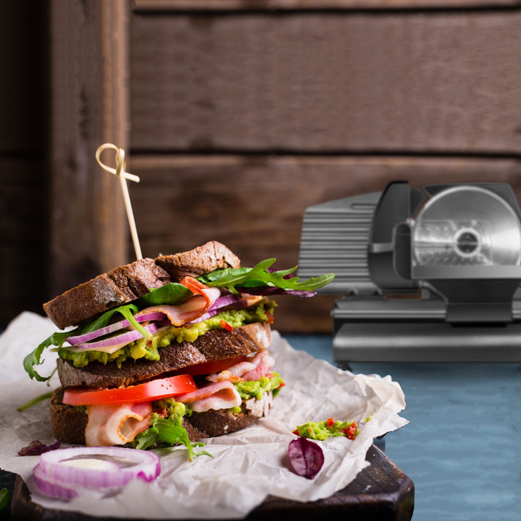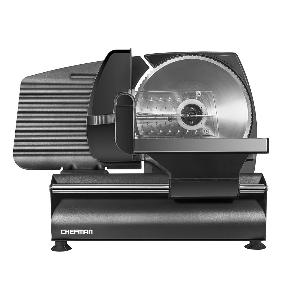 Fresher Charcuterie boards, sandwiches, and more — any way you slice it. With a powerful 180 Watt motor and serrated stainless steel blade, this machine is ideal for slicing meats, cheeses, bread, fruits, and vegetables. The adjustable thickness dial makes it great for customizing how thin or thick you want to slice it, so you can get your favorite deli style sandwiches and wraps right at home. With a sleek, compact design, this 9" x 12" food cutter is small enough for most cabinets and countertops, making it the perfect tool for any home cook. Removable and retractable 7.5" serrated stainless steel blade and die-cast aluminum housing are easy to clean. Sturdy non-slip feet, blade safety guard, and food pusher ensure that the food slicer will stay in place, so you can keep a firm grip and full confidence while operating. The safe on/off switch feature allows you to cut safely for a customized, clean slice - every time. cETL approved with advanced safety technology for long lasting durability, and 1-year hassle-free assurance provided by Chefman, so you can purchase worry-free.