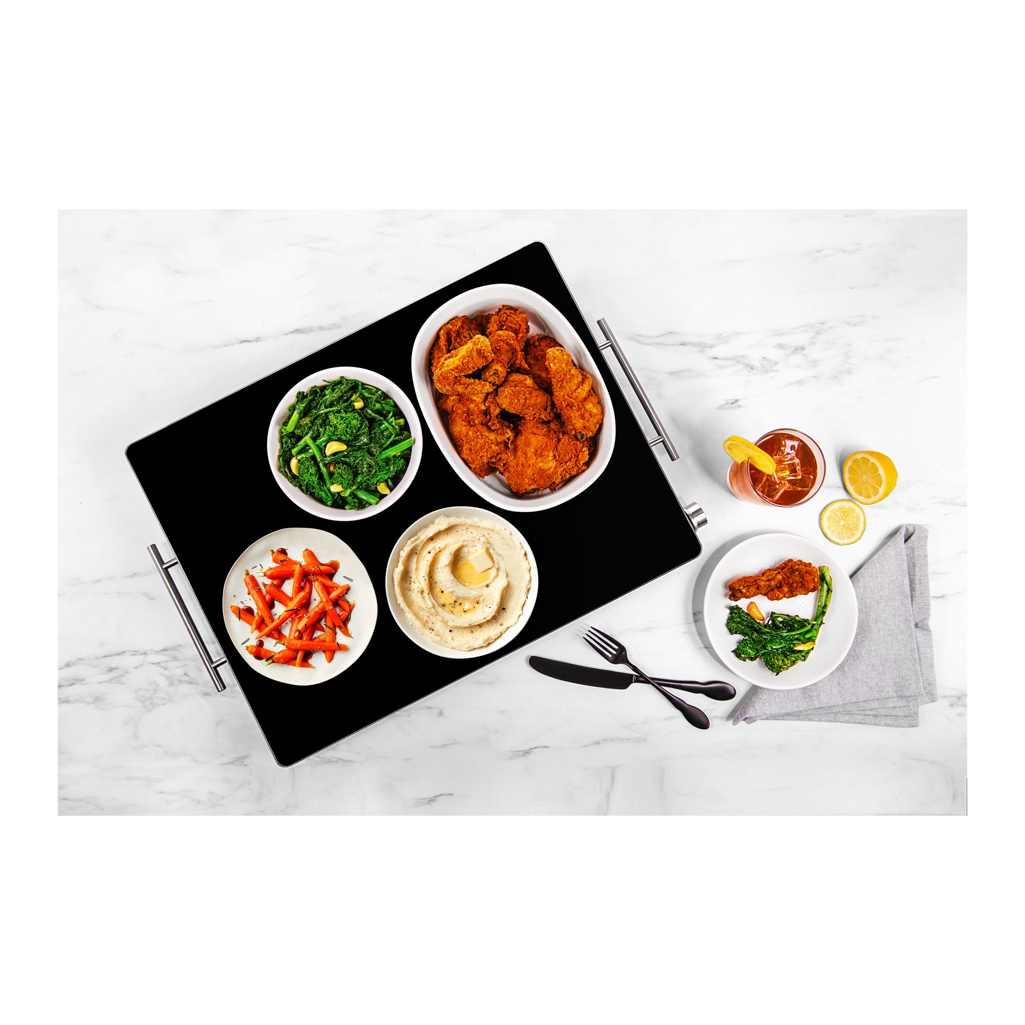 This family-sized warming tray can fit several dishes at once and looks great on any countertop, table, or buffet. The adjustable temperature control and size make it suitable for family dinners, Sunday football games, holiday meals, or other big parties or events. The adjustable temperature settings make it easy to quickly heat up your food, while the fuse safety feature keeps the electric tray from overheating so you can keep your food warm throughout the whole day. You can keep the hot plate on low to keep food warm throughout the day or adjust it to high to heat your appetizers quickly. (Should not be left on for longer than 72 hours.)