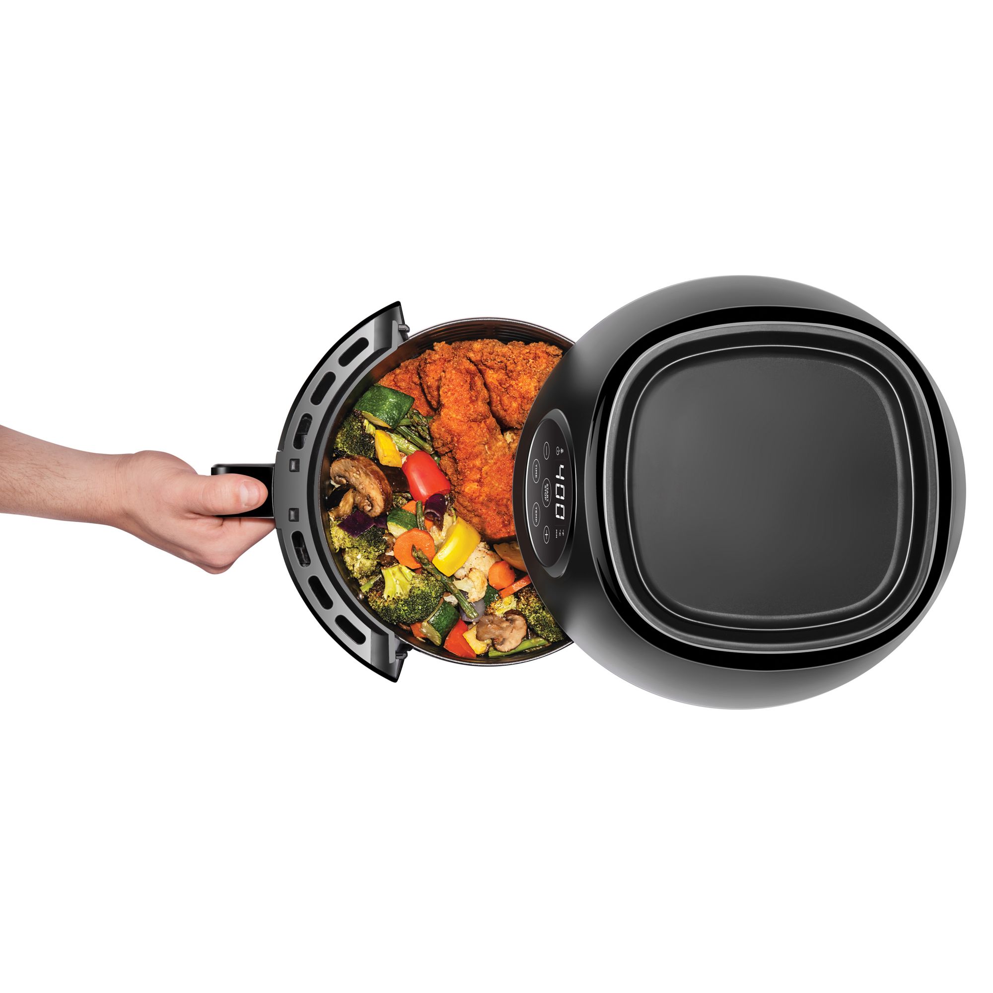 The easy to use digital interface will have you air frying your delicious favorites in no time!Flat Basket Design