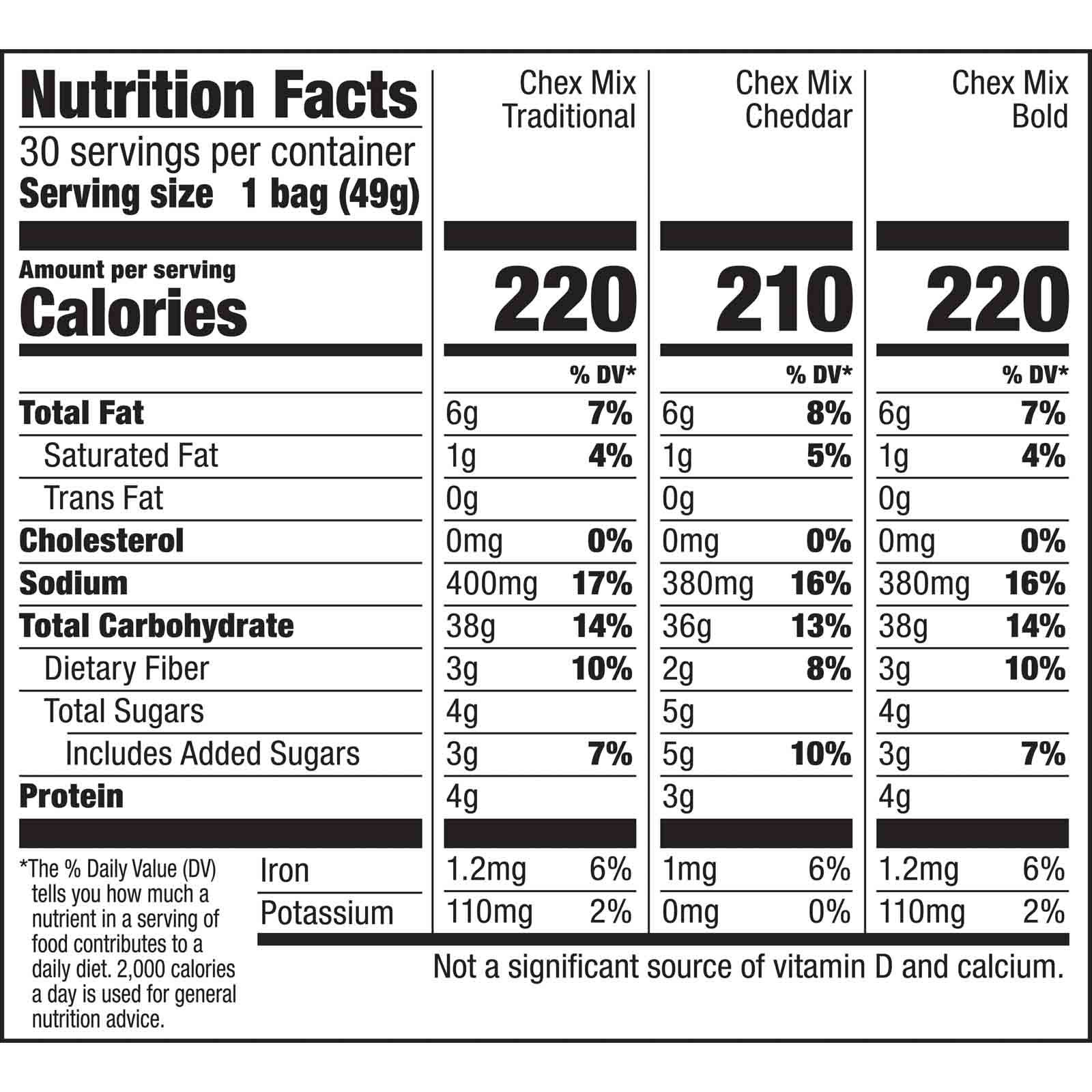 Loaded with fun, flavorful shapes of Chex, pretzels, breadsticks and more Endless taste and texture combinations make it the perfect snack for get-togethers of all shapes and sizes Pick your flavor mix: Traditional, Cheddar, Bold and many more Chex Mix contains 60% less fat than regular potato chips Tasty and easy snacks for lunch time, break time and anything in between Includes 30-counts snack mix