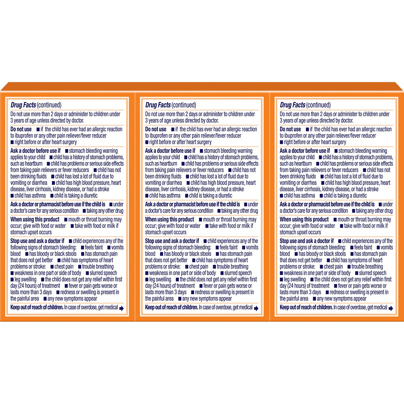 Includes 100mg dye-free ibuprofen tablets for children, 72 ct.