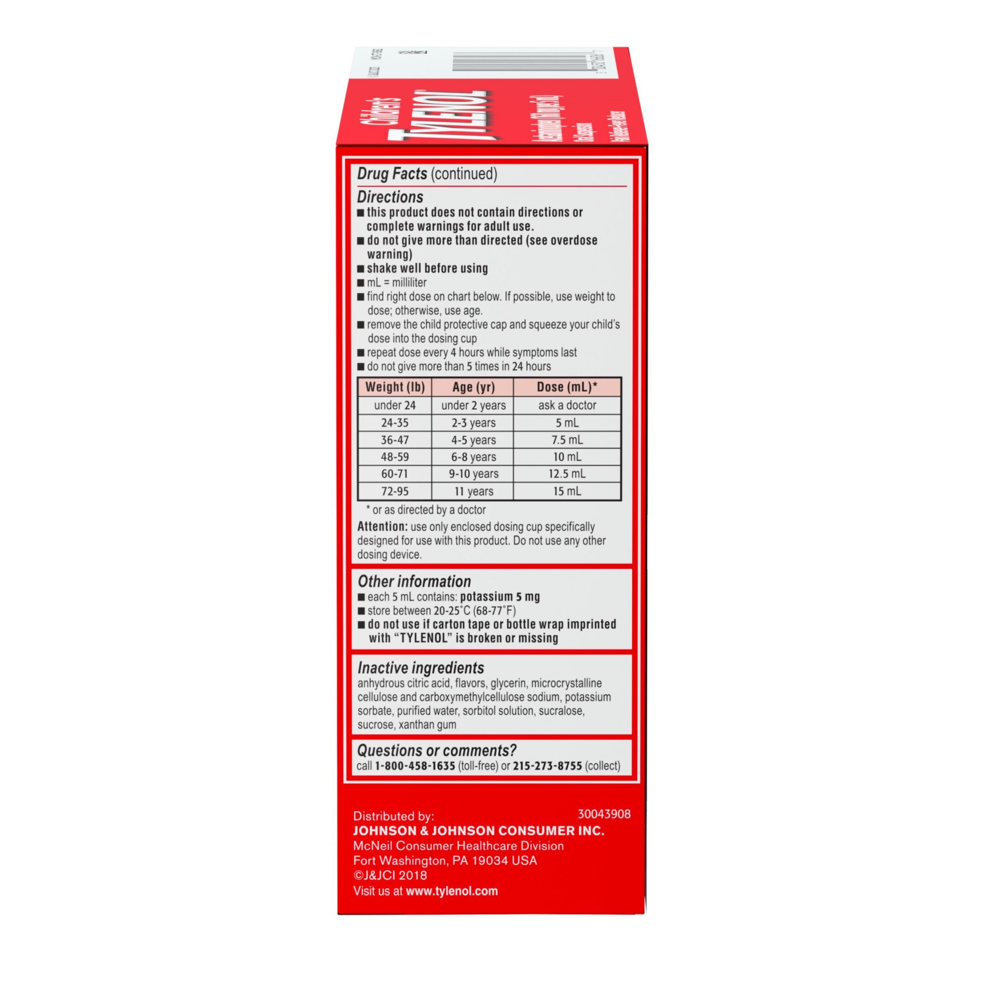Intended for kids ages 2 to 11 years, Children's Tylenol Liquid Oral Suspension Medicine with Dye-Free Cherry flavor provides temporary relief from a range of cold and flu symptoms, including fever, minor aches and pains, headache, and sore throat. Each 5mL dose of this kids' liquid medicine contains 160 milligrams of the pain reliever and fever reducer acetaminophen to temporarily reduce fever and help relieve minor aches and pains due to the common cold, flu, sore throat, headache, and toothache. This children's cold & flu symptom medicine also comes in a kid-friendly dye-free cherry flavor and is ibuprofen-, aspirin- and alcohol-free, and is gentle on the tummy. From the #1 pediatrician recommended brand for pain & fever relief, Tylenol has been used by parents decade after decade for effective symptom relief.