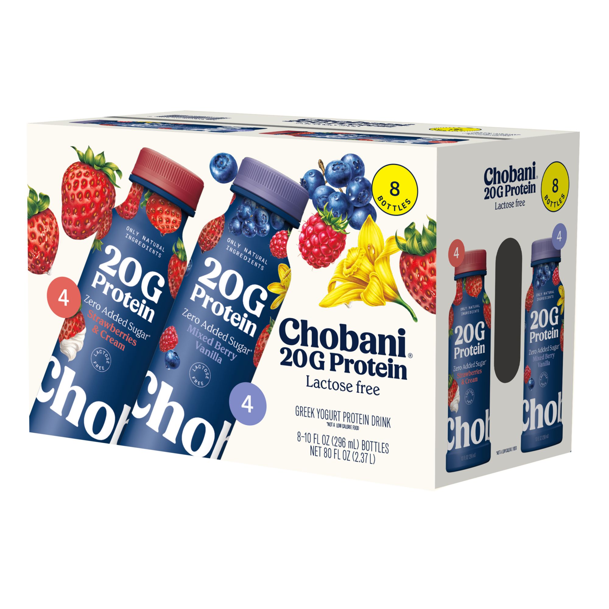 Chobani 20g Protein, Mixed Berry Vanilla, Strawberries & Cream, Protein Drinks Variety Pack, 8 ct./10 oz.