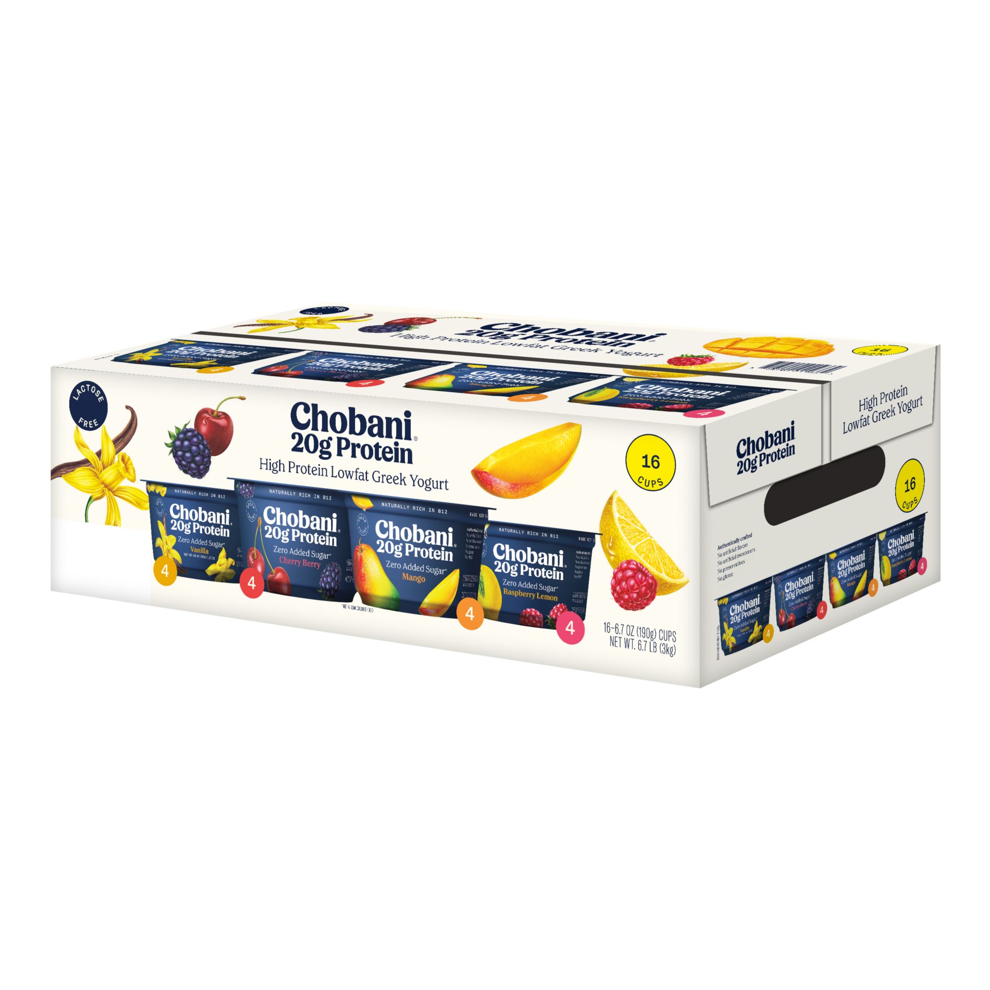 Chobani 20g Protein, Yogurt Variety Pack, Raspberry Lemon, Vanilla, Mango, Cherry Berry, 16 ct./6.7 oz.