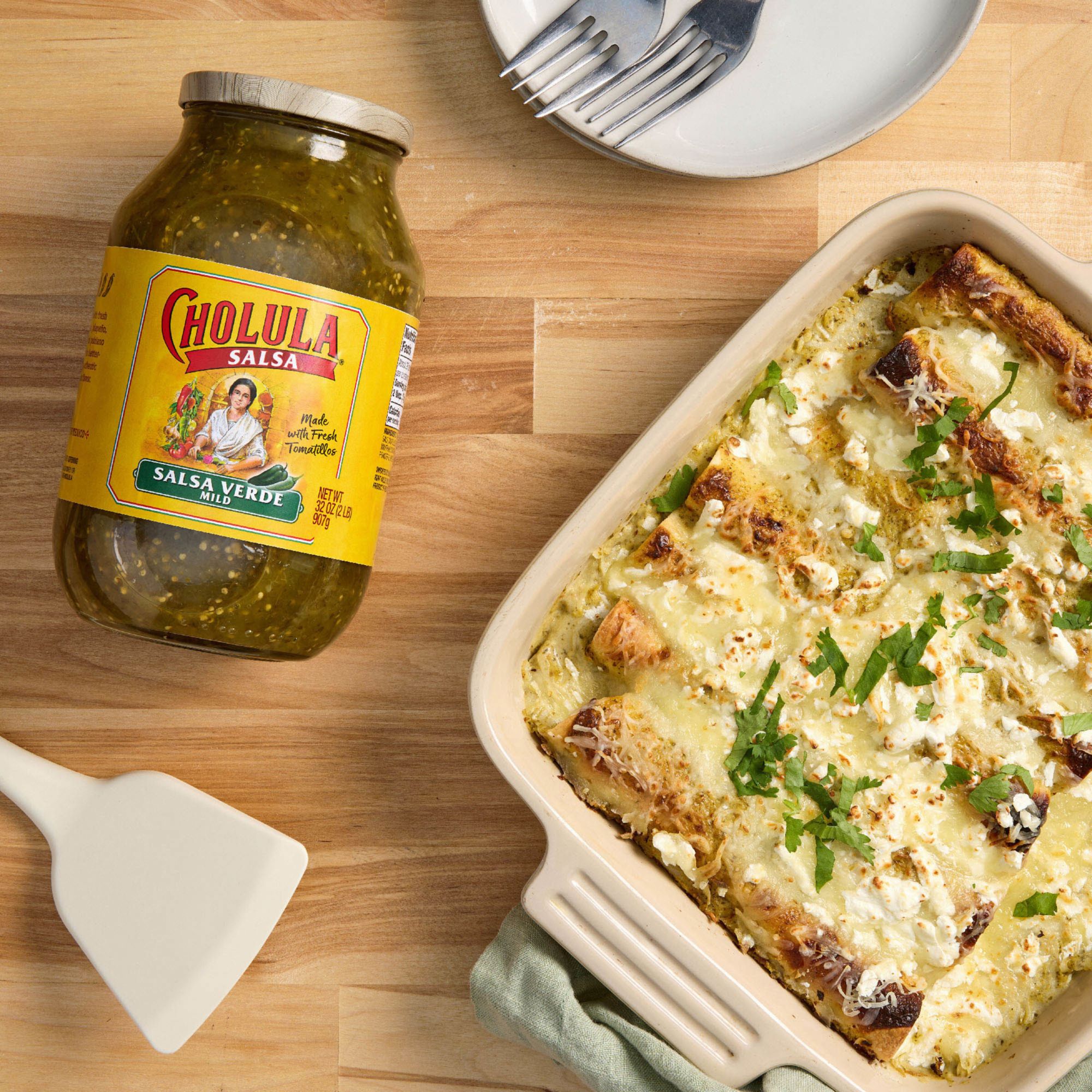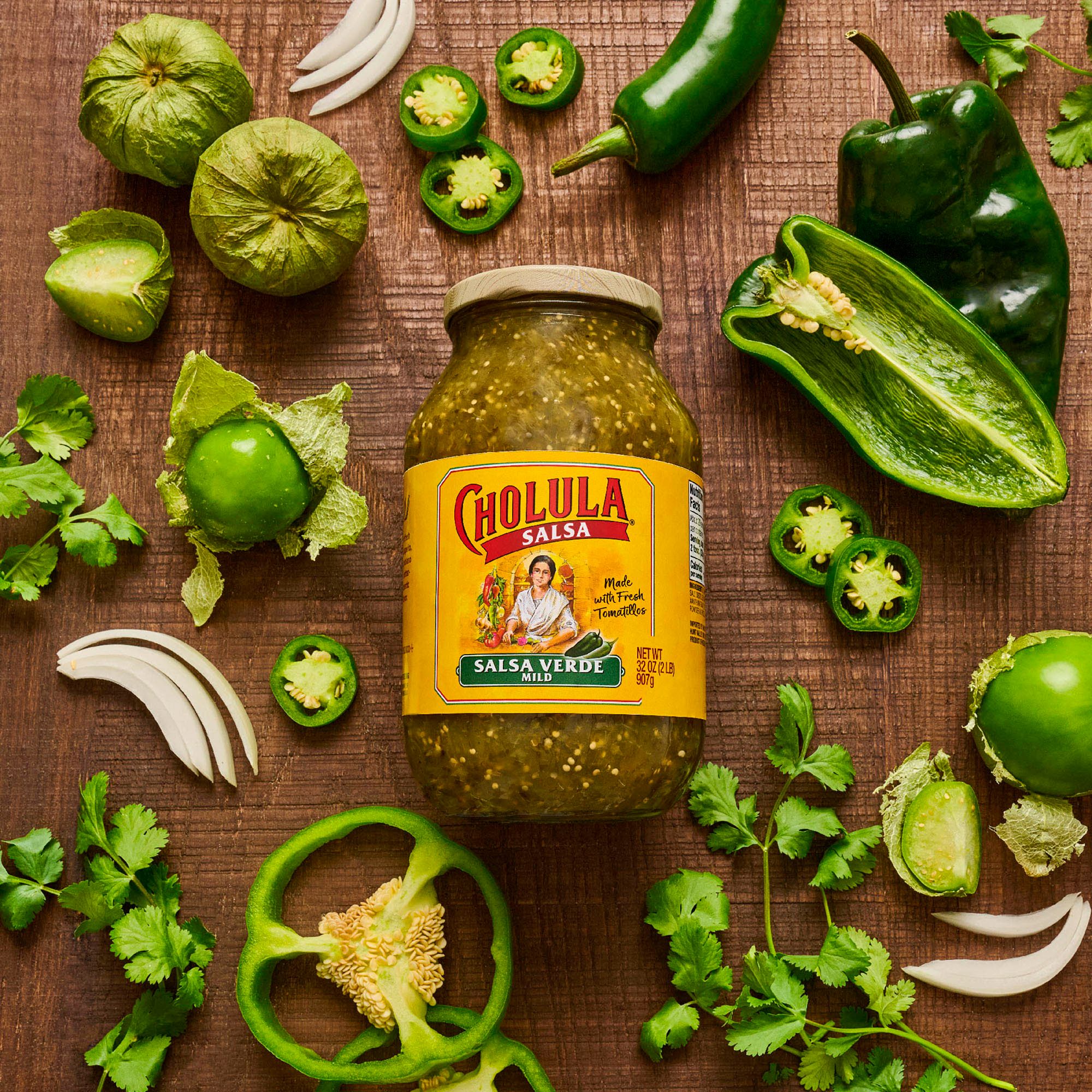 Cholula Salsa Verde is crafted with fresh tomatillos, onions, jalapenos and poblano peppers for better-tasting authentic Mexican flavor. This green salsa has mild heat and tangy flavor that’s perfect for all types of Mexican foods, from tacos and tostadas to burritos, enchiladas and nachos. Like Cholula Hot Sauces, Salsa Verde is made from family recipes that’s passed down through generations. They use fresh ingredients including tomatillos, onions, green bell peppers and chili peppers to create a salsa that brings a zesty burst of brightness with a subtle kick of heat. Serve simply as a dip with tortilla chips or over chicken, seafood, ground beef dishes, veggies, scrambled eggs, and frittatas. It makes every dish delicioso!