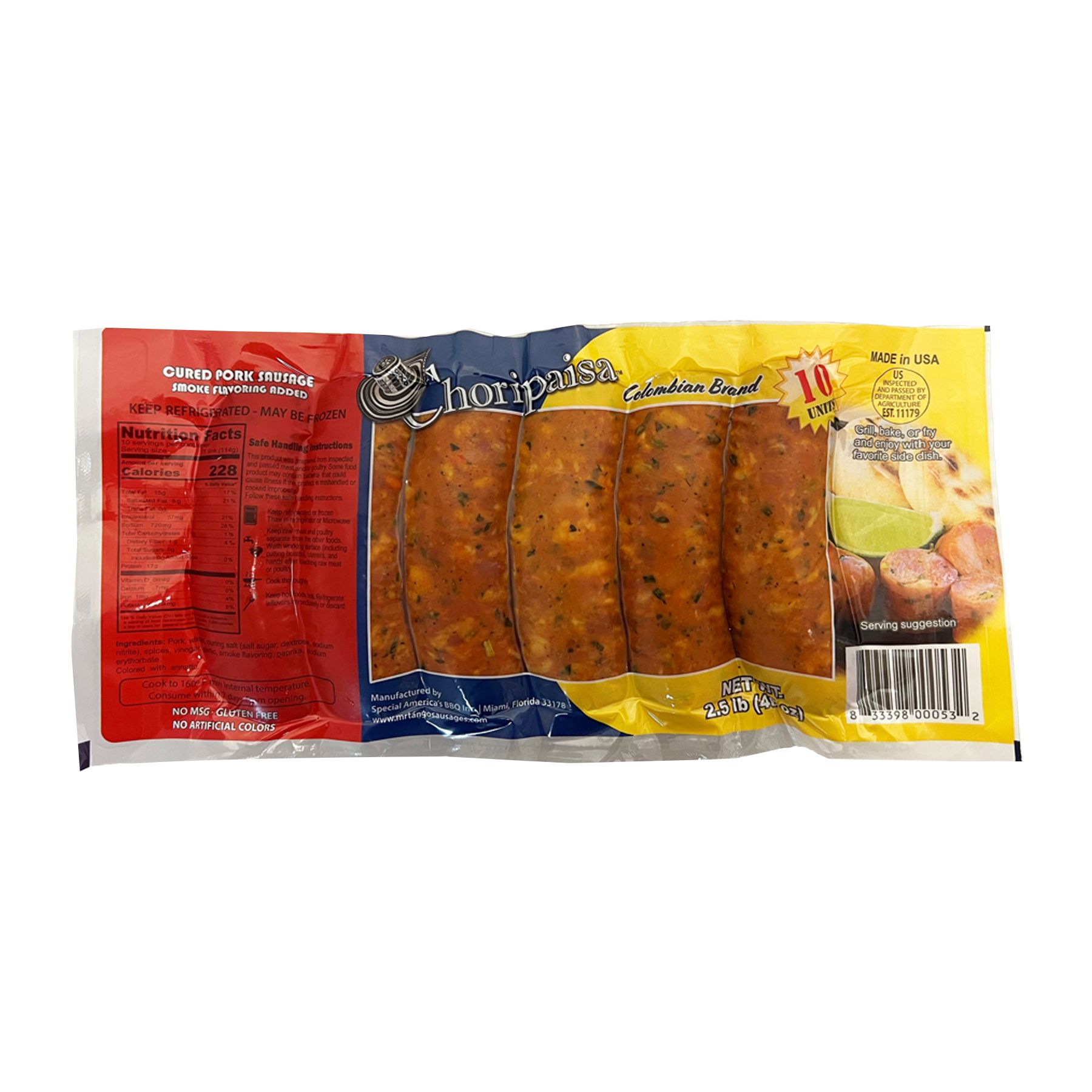 Choripaisa Colombian-style pork sausages are a combination of fresh ingredients, and spices that make them a great appetizer or meal for your next BBQ. Made with fresh and never frozen pork, the meat is first ground and mixed, then sausages are stuffed and hung and transferred to trays for packaging. All are vacuum-packed to provide longer shelf life. They are delicious grilled or sauteed, and make a great addition to any recipe calling for chorizo. The delicious smoky flavor and crunchiness of the onions are highlights of this product. This product can be prepared on the grill (gas or charcoal), skillet, broiler, allow about 10 minutes to fully cook or until the internal temperature reaches 150 degrees F.