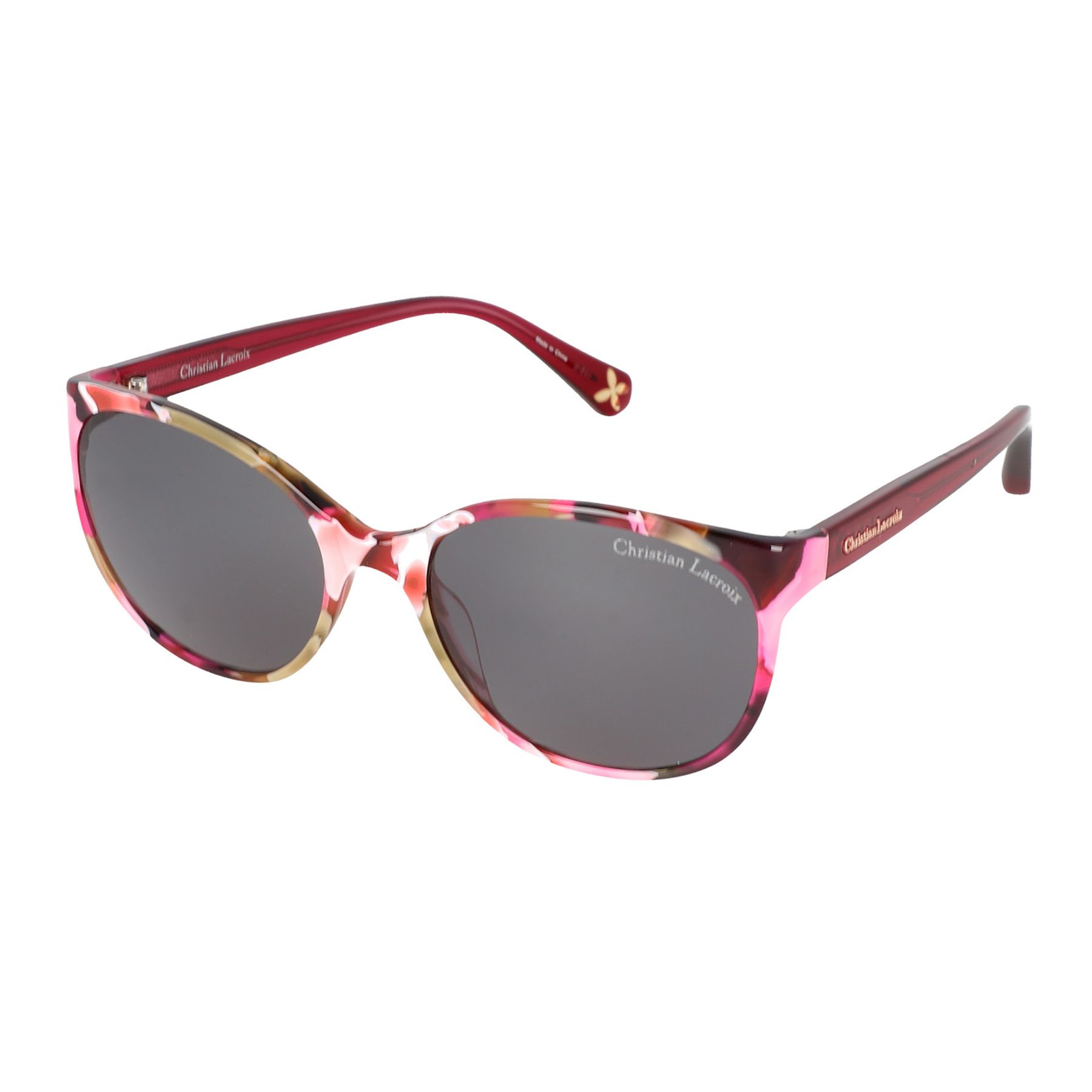 Christian Lacroix CL5075 are fashion forward sunglasses with exclusive Mazzuchelli pattern and acetate. These full rim frames have an updated round style and the temple tips feature the signature butterfly icon.