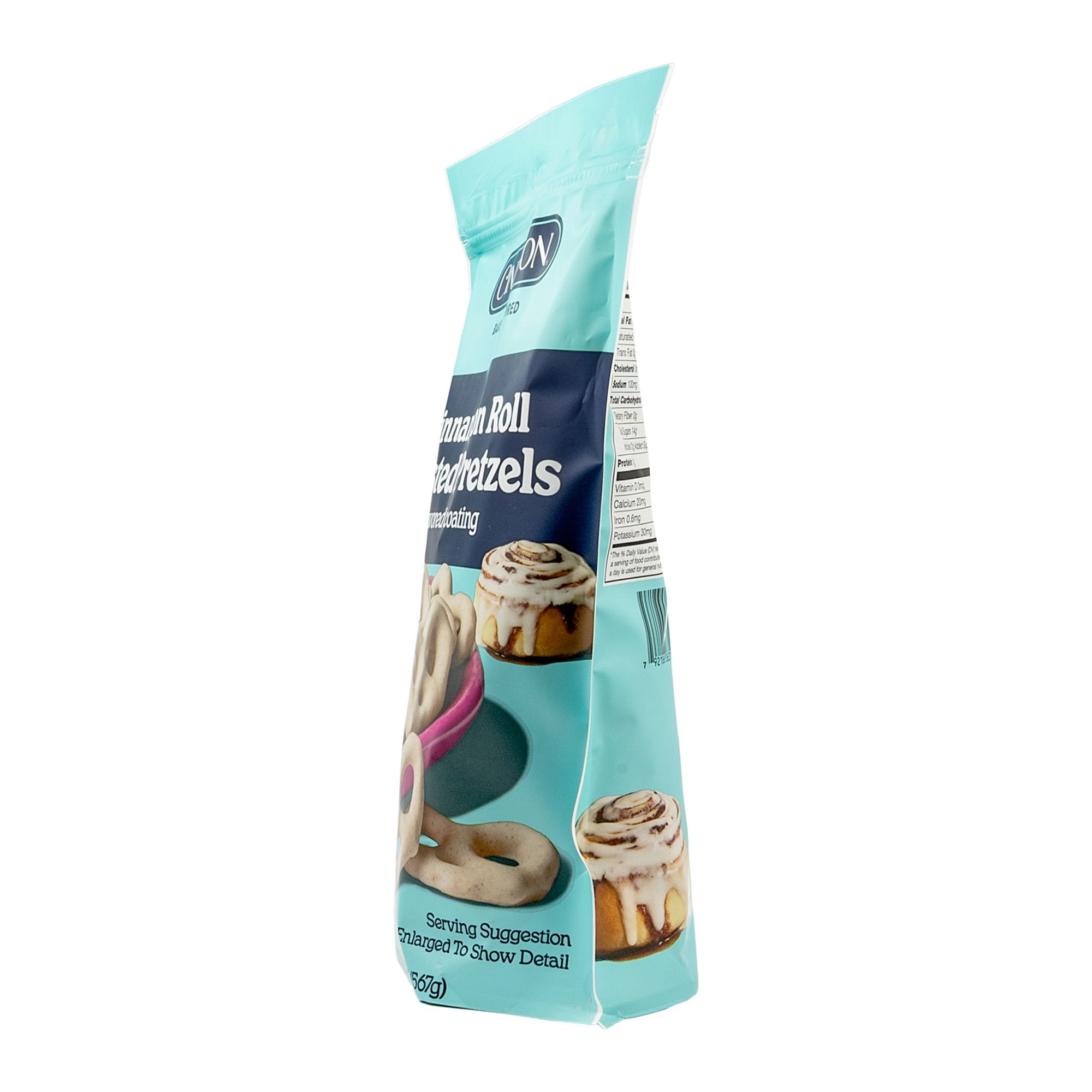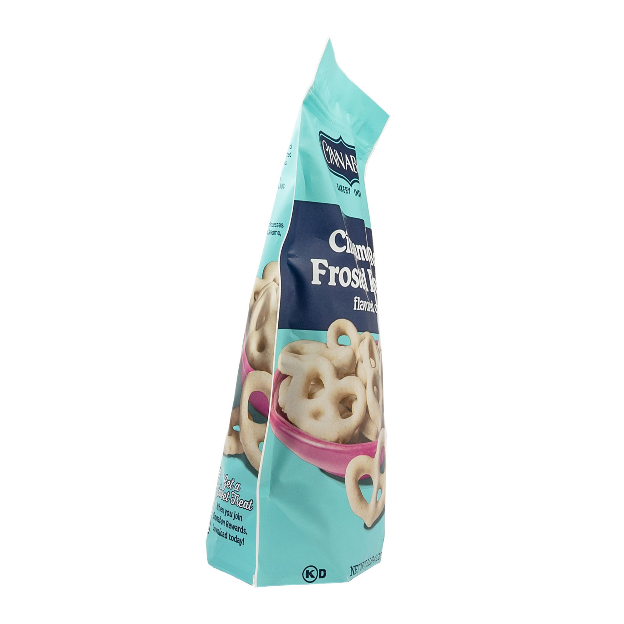 Crunchy pretzels with sweet cinnamon roll-style frosting inspired by Cinnabon’s signature flavors. The sweet coating provides contrast to the salty pretzel - ideal if you like sweet-salty snacks. Crisp, crunchy pretzel base covered in a smooth, sweet coating.