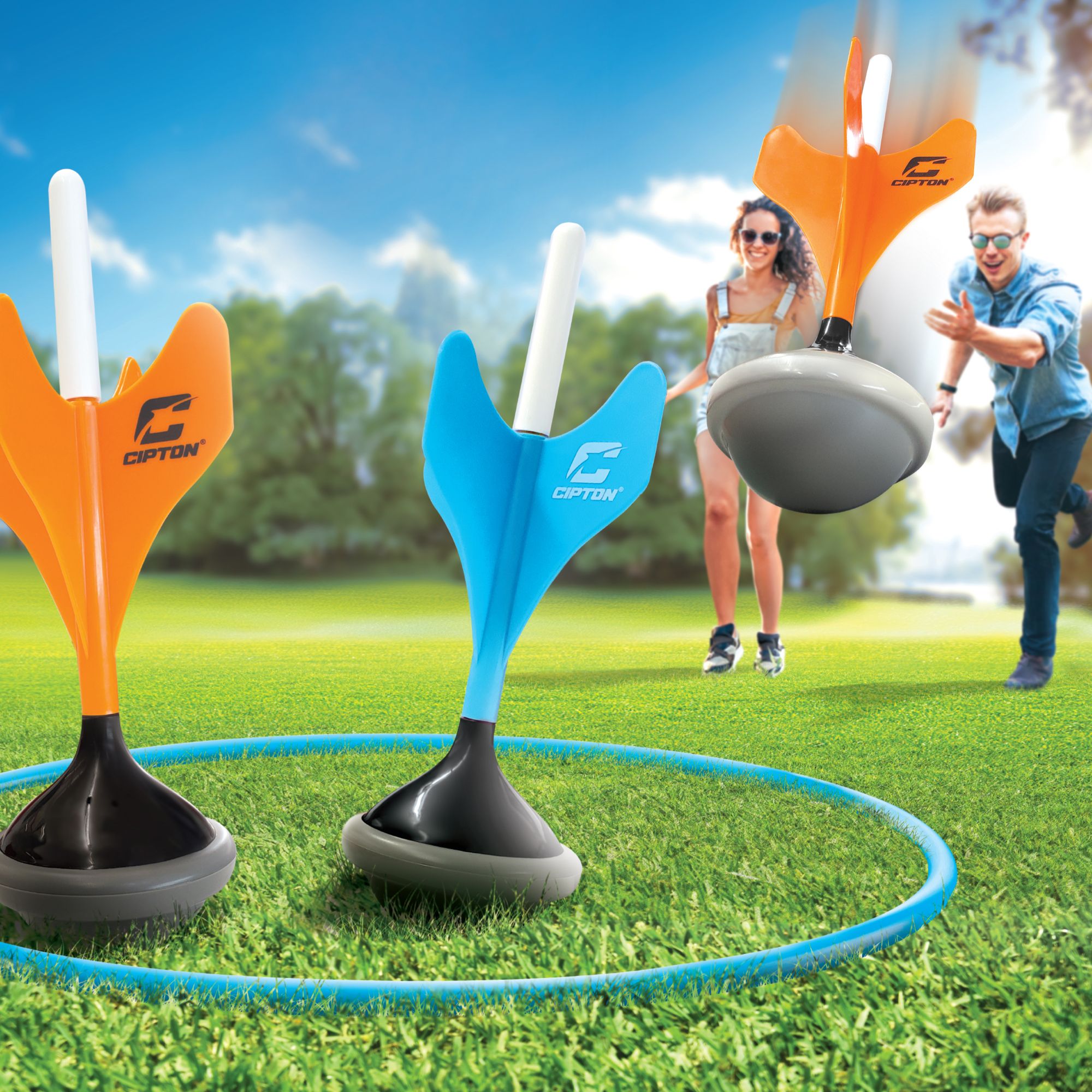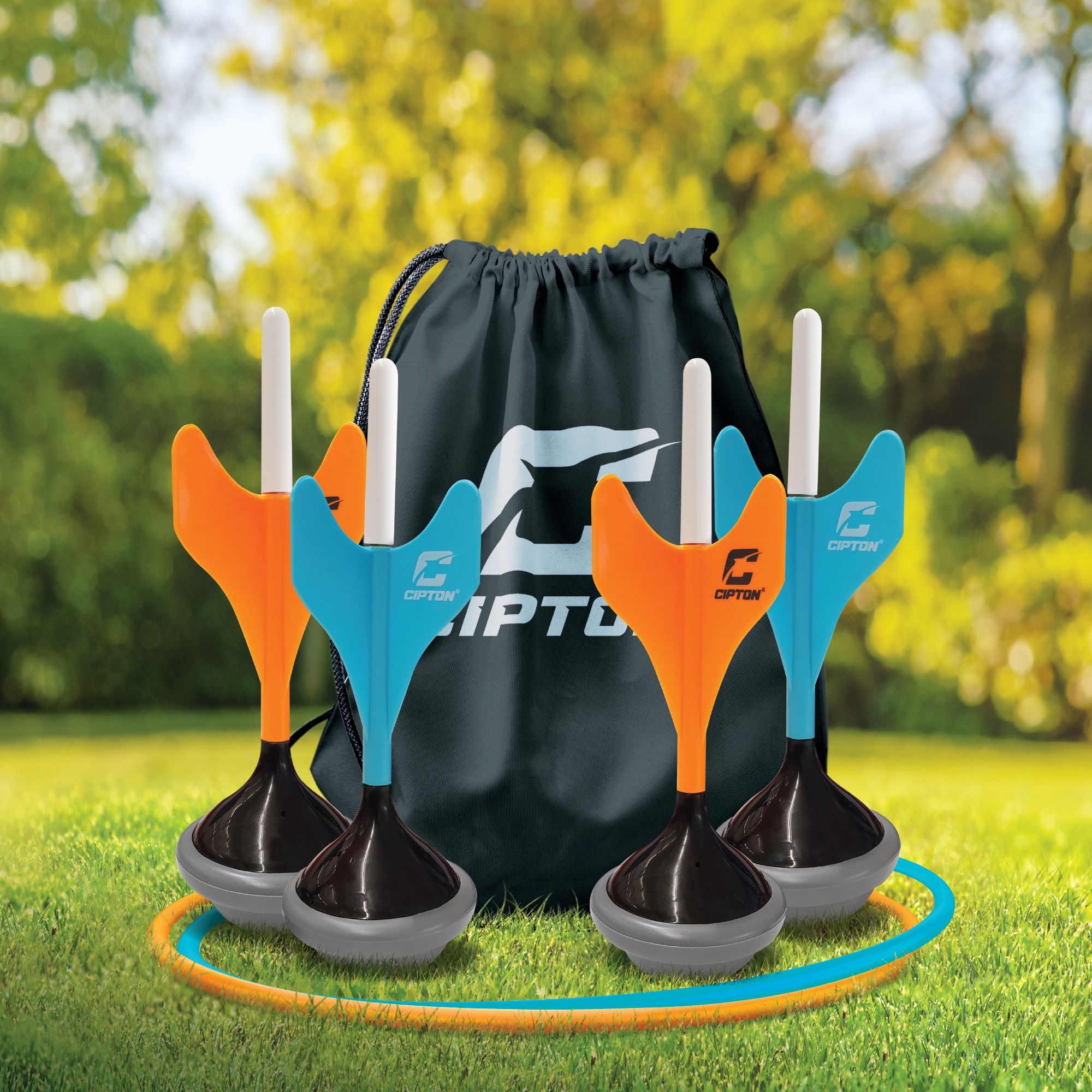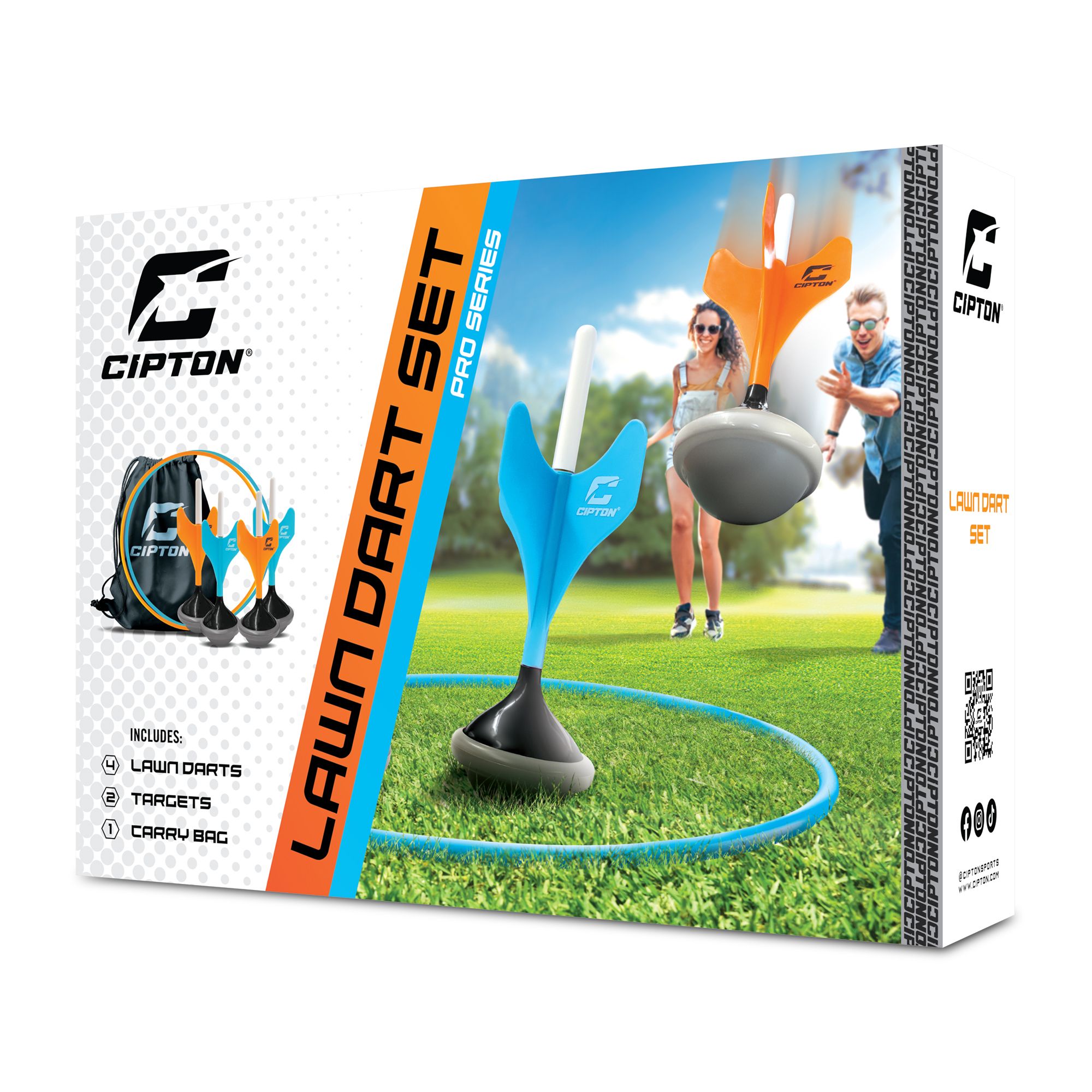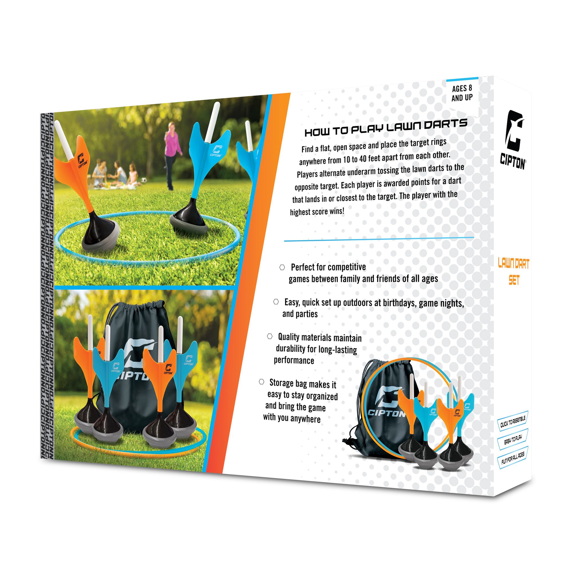 The Cipton Lawn Dart Set - Pro Series has all you need to set up a great game of lawn darts with friends and family. To play Lawn Darts, find a flat, open space and place the target rings anywhere from 10 to 40 feet apart from each other. Players alternate underarm tossing the lawn darts to the opposite target. Each player is awarded points for a dart that lands in or closest to the target. The player with the highest score wins!