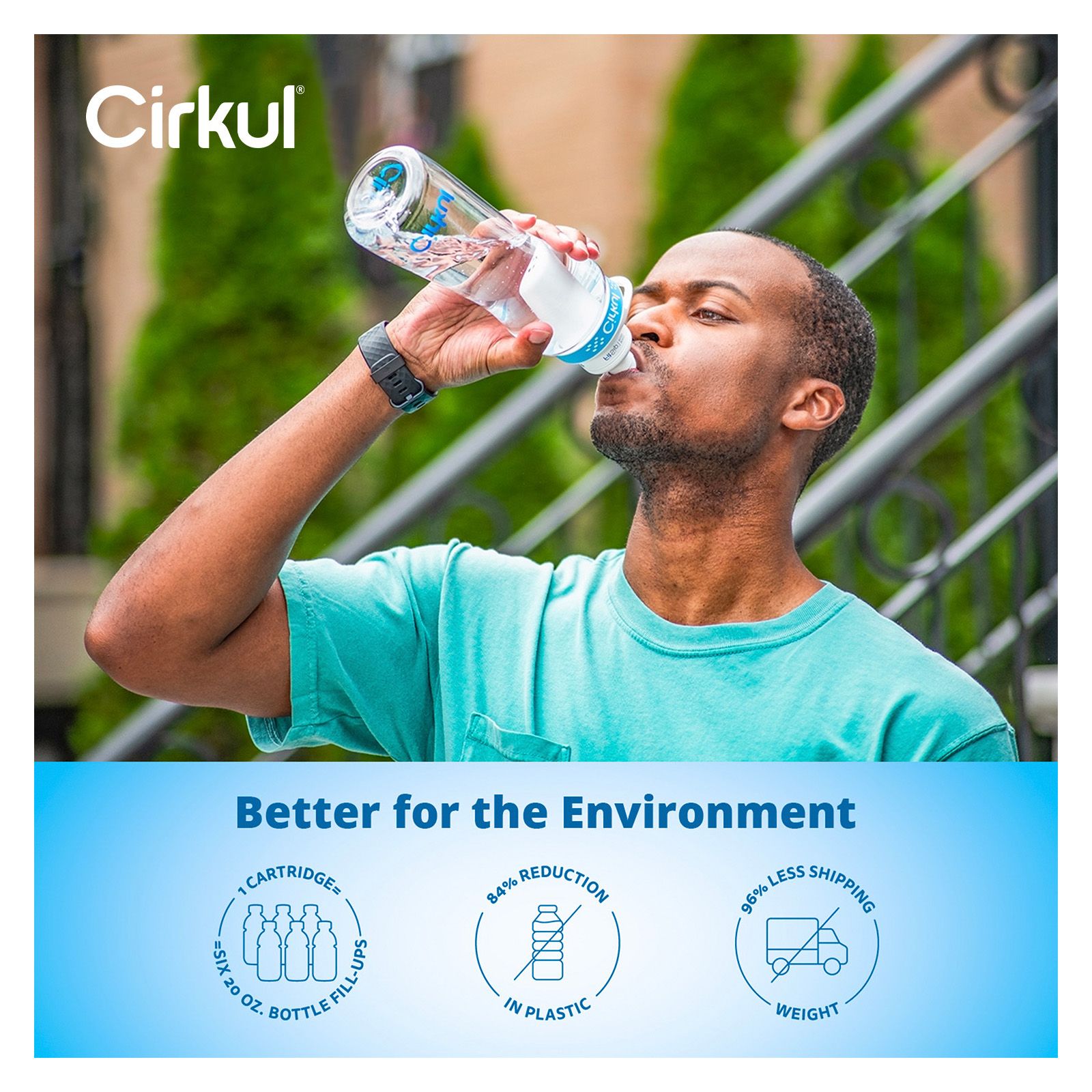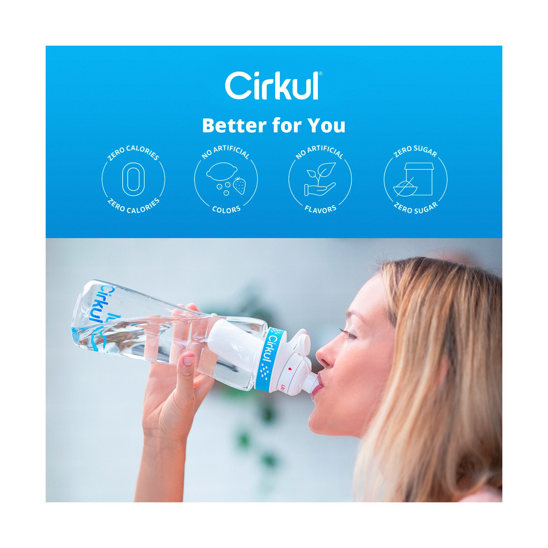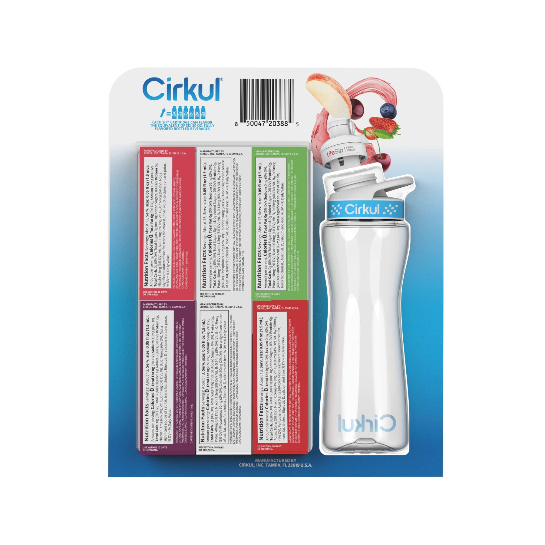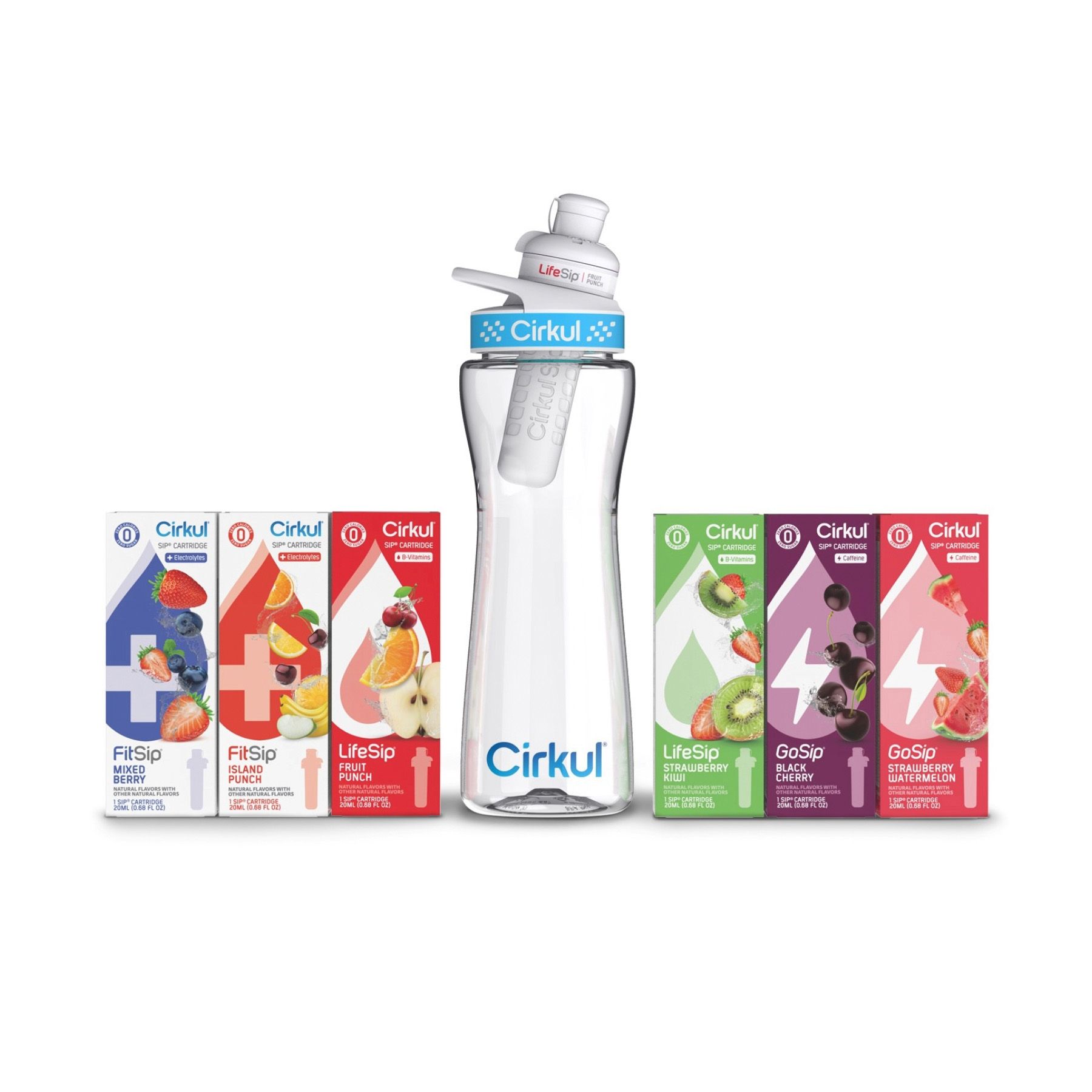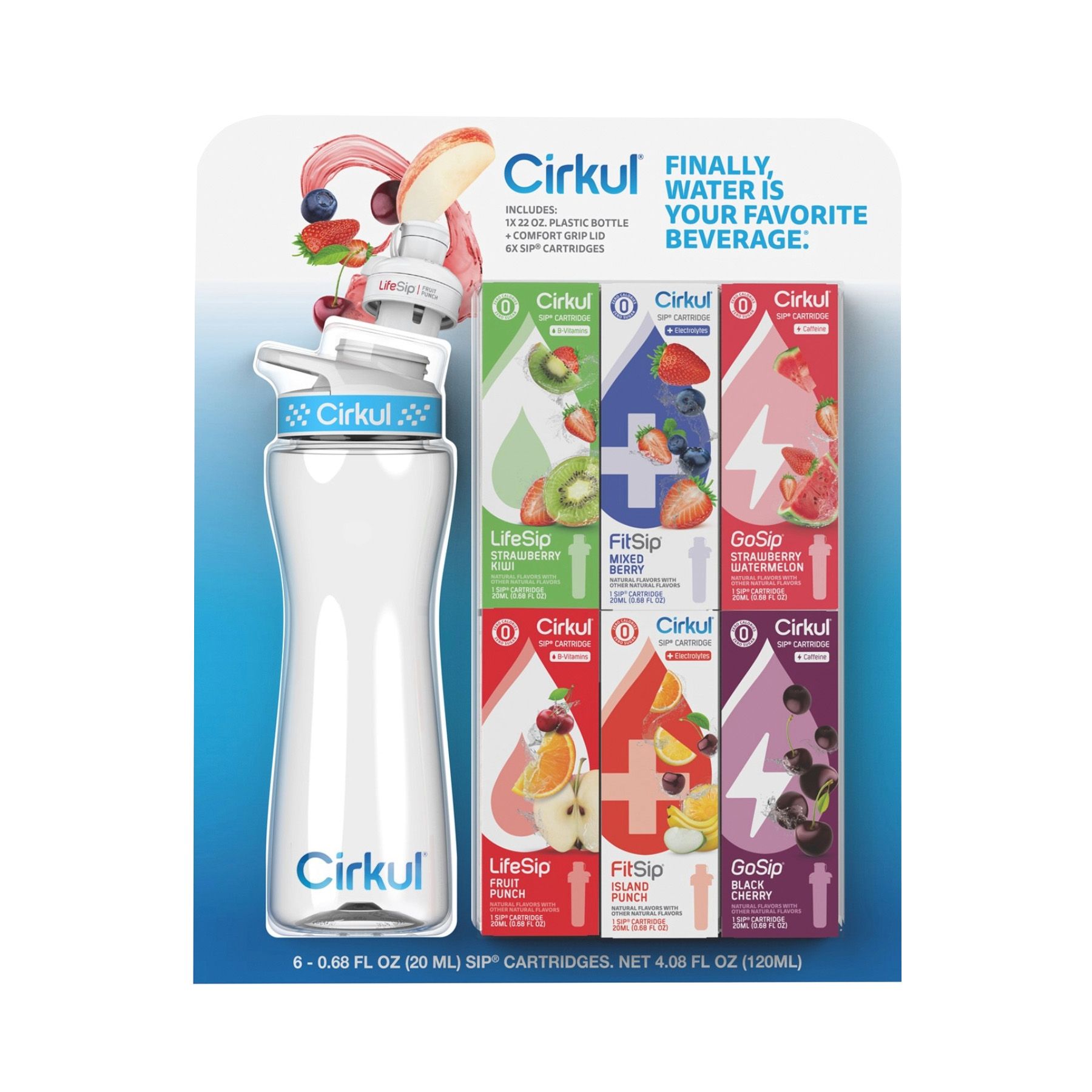 Cirkul Plastic Water Bottle Starter Kit With Blue Lid + 6 Flavor Cartridges, 22 oz.