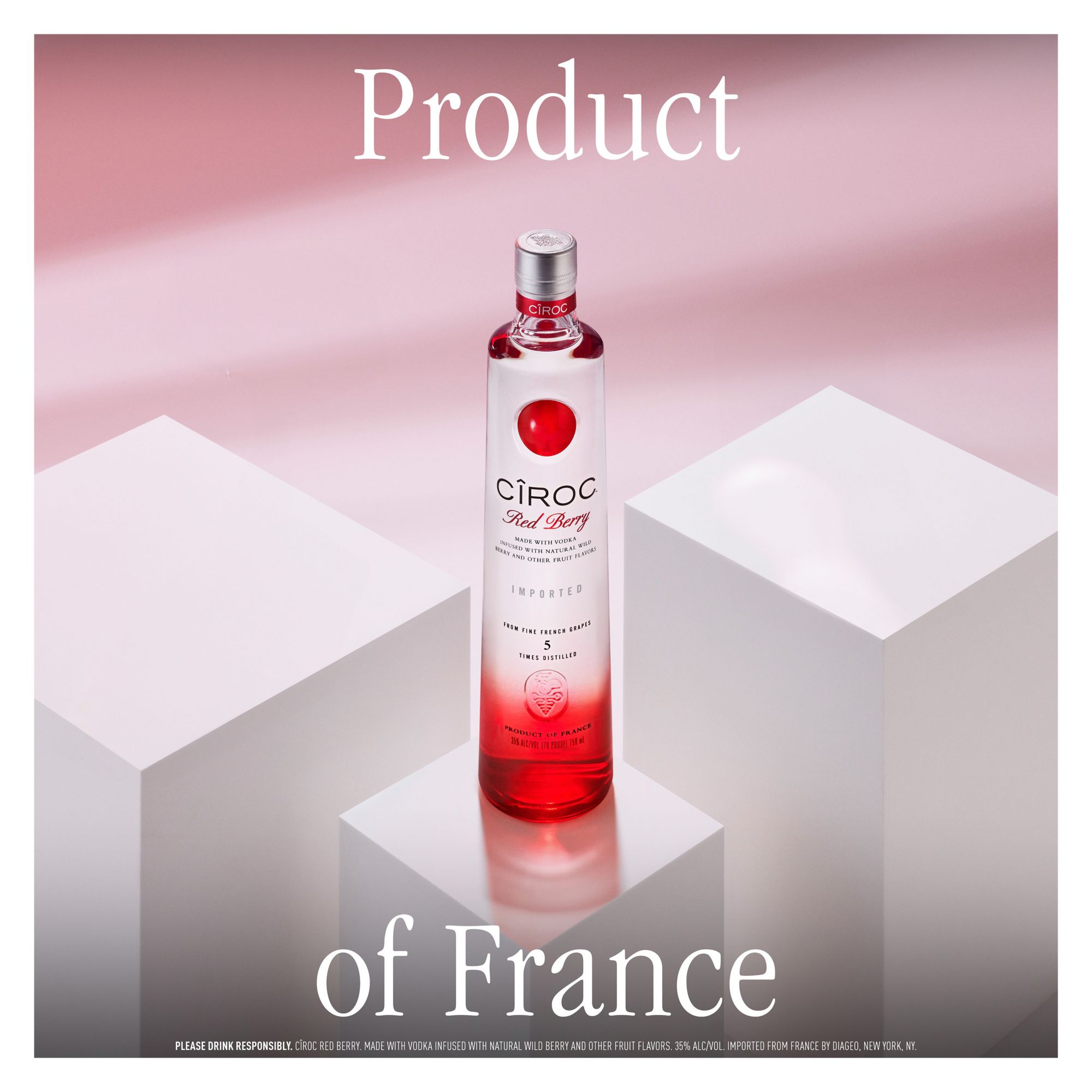 Ciroc Red Berry is a rich tasting spirit made with vodka distilled five times from fine French grapes, finished in a tailor-made copper pot still in Southern France. This spirit is masterfully infused with a distinctive blend of raspberry, strawberry and other natural flavors, resulting in a taste experience that is lusciously different and elegantly smooth. Perfect for any vodka soda. Includes one 70 proof 1.75 L bottle of Ciroc Red Berry. Please drink responsibly.