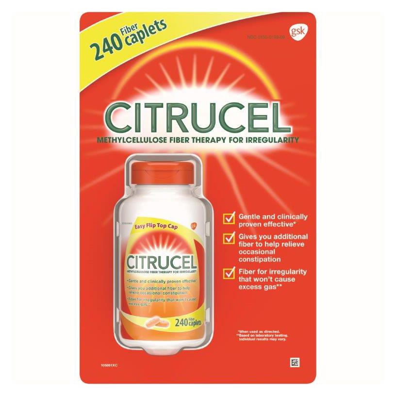 Citrucel Fiber Caplets with methylcellulose fiber is fiber therapy that is clinically proven effective to help relieve occasional constipation. In an easy-to-swallow caplet form, Citrucel's classic go-to formula gently helps relieve irregularity (when used as directed).