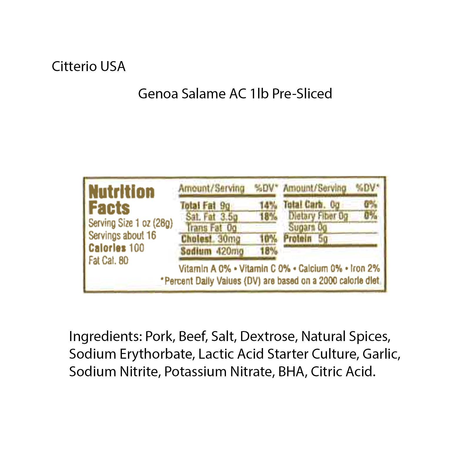 Enjoy this traditionally cured and aged Citterio Genoa Salami in a variety of ways. It's made with fresh cuts of pork and tastes great on pizza, in salads or in sandwiches.