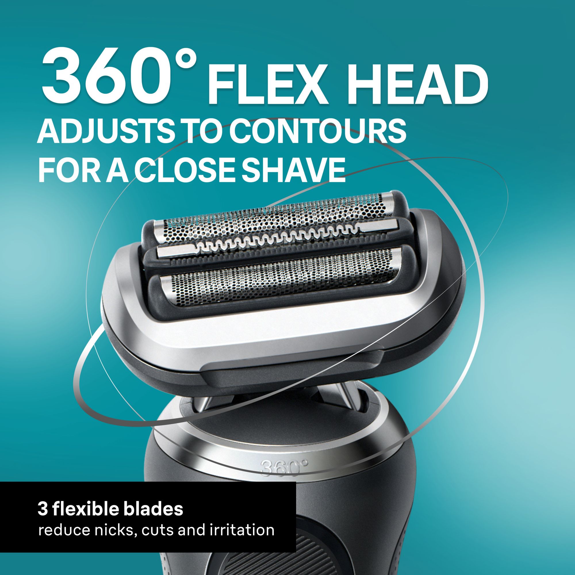 For a close shave, faster*: the 360 degrees flex head adapts to your contours for an extremely close shave, even in tricky areas (vs previous Braun Series 7).