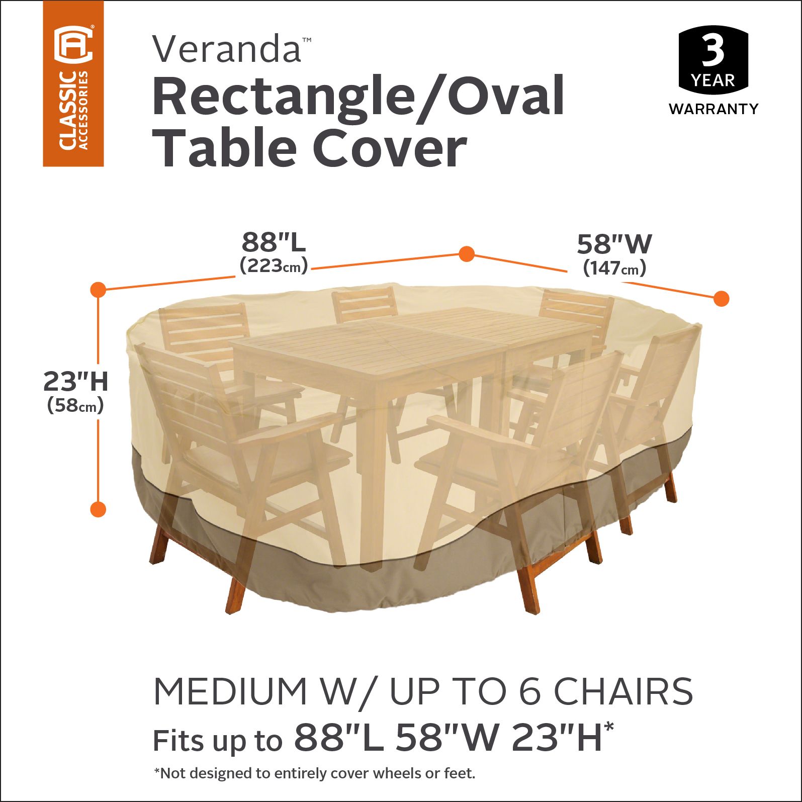 Classic Accessories Veranda Collection 88" x 58" Patio Table and 6-Chair Set Cover - Pebble/Bark/Earth