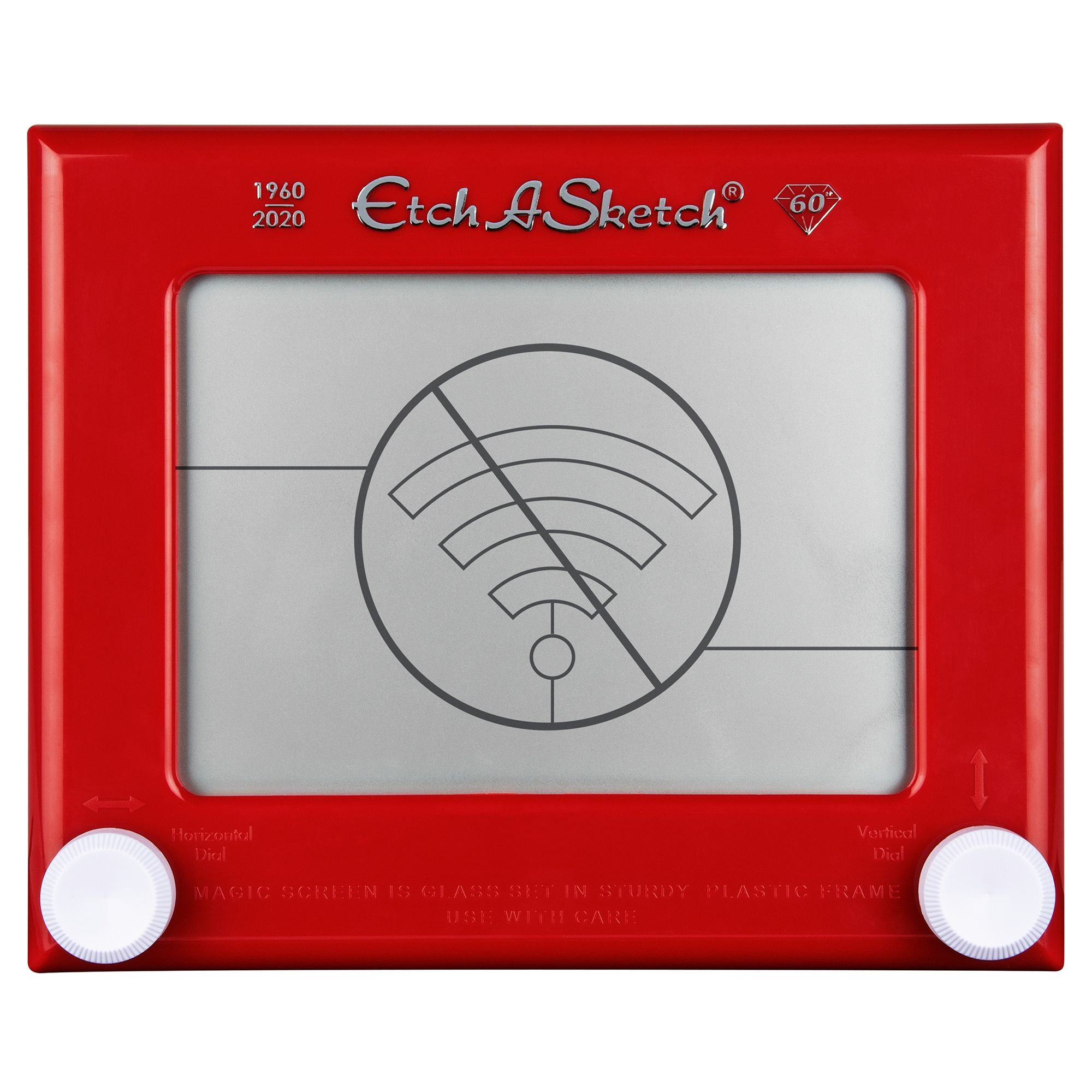 Unplug with the world’s favorite drawing toy: Classic Etch A Sketch. For more than 60 years, children and adults have been experiencing the magical world of creativity and pencil-free drawing with the Etch A Sketch doodle board. With its iconic red frame and white knobs, it’s easy to draw on the original magic screen. Use the left knob to draw lines left and right, and use the right knob to draw lines up and down. Use both knobs to curve the lines, or draw on an angle. Once you’ve mastered the basics of drawing with your Etch A Sketch, let the endless creativity begin. What will you draw? When you’re finished a drawing and ready to start another, shake to erase and start the fun all over again. Etch A Sketch is the perfect screen alternative for all ages – no charging, no batteries, no Wi-Fi needed. Have hours of fun shakin’ and erasin’ with Classic Etch A Sketch.
