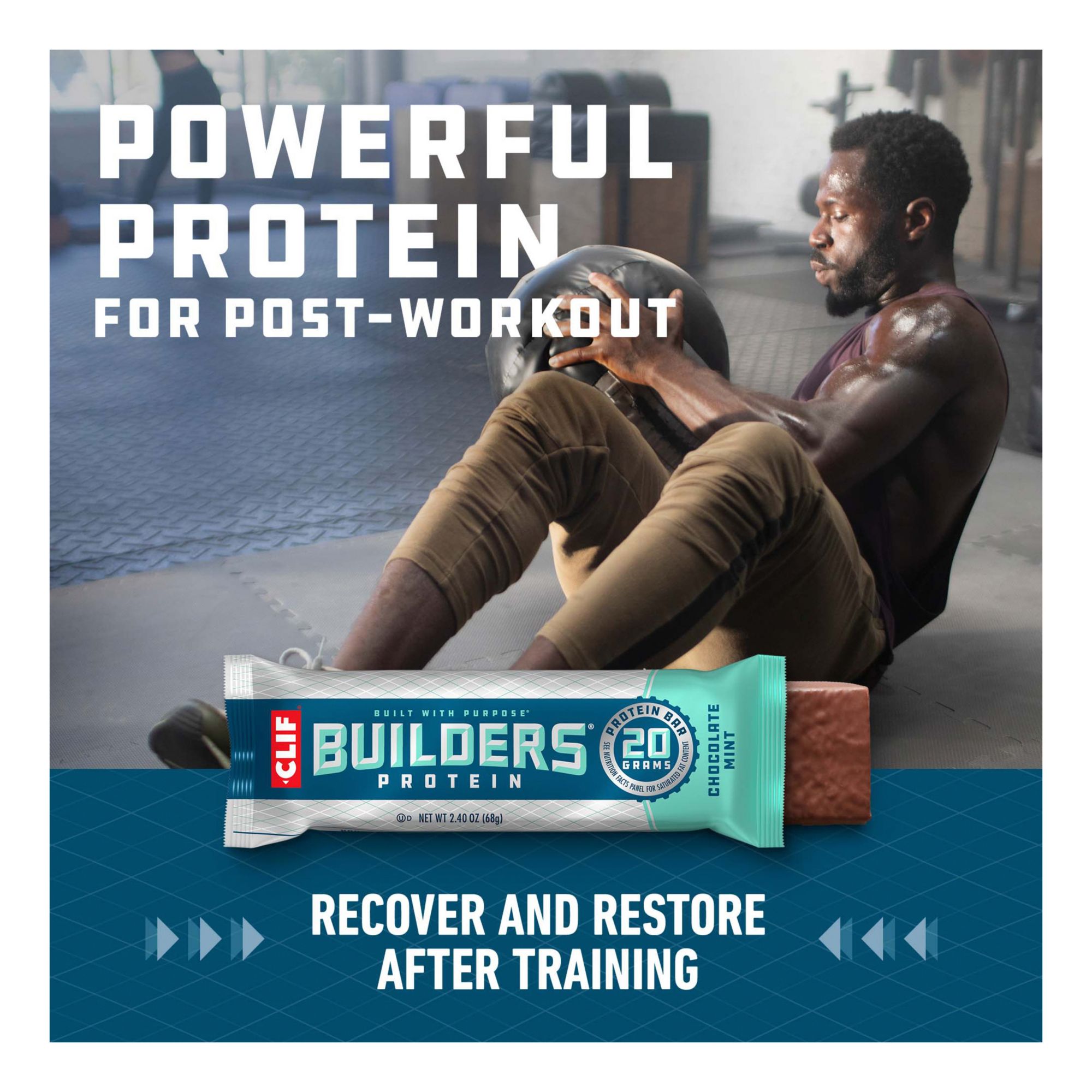 Energy for tough workouts: High protein bar with 20g of complete protein* and additional carbohydrates, Clif Builders are perfect for fueling recovery and sustaining hardworking bodies after training or competing