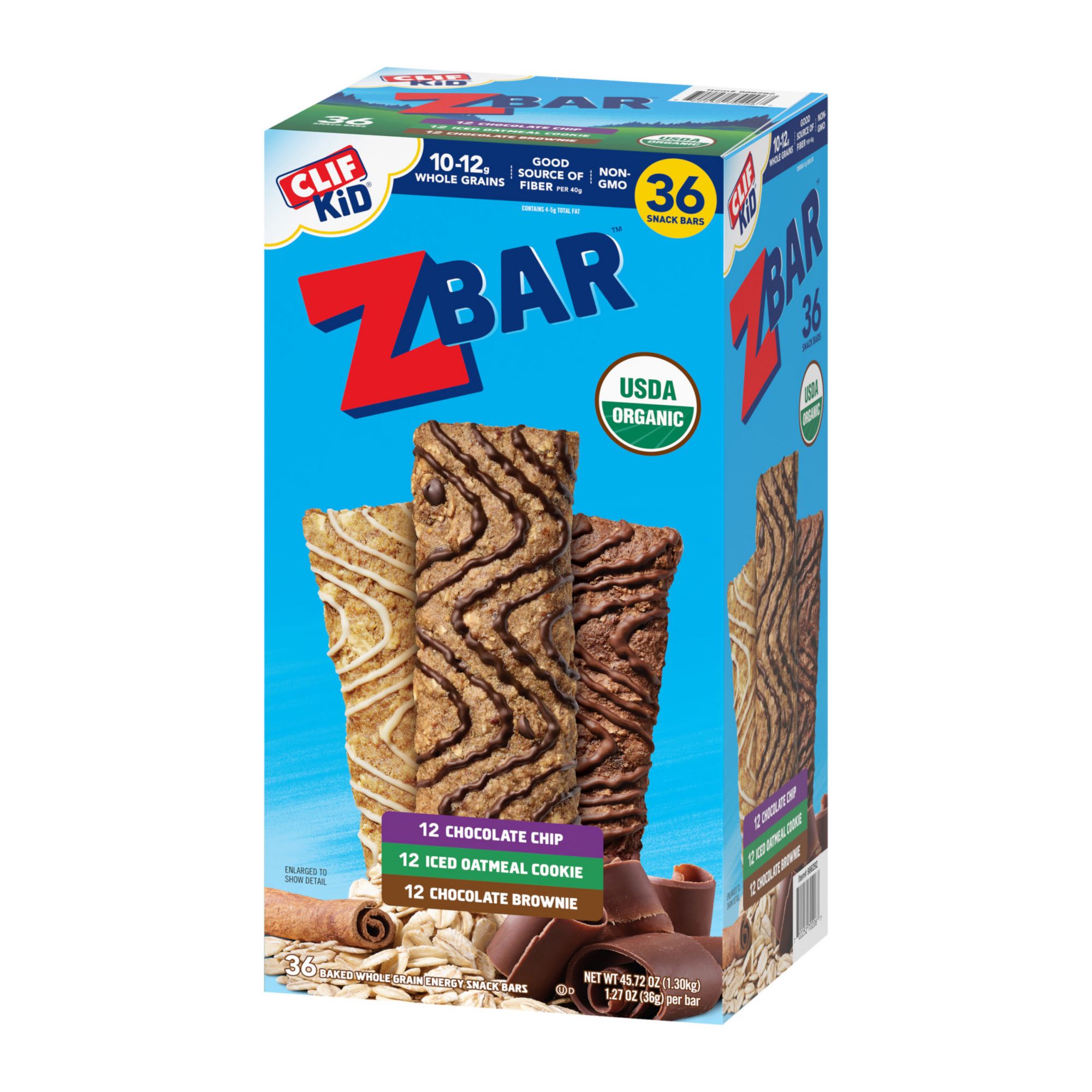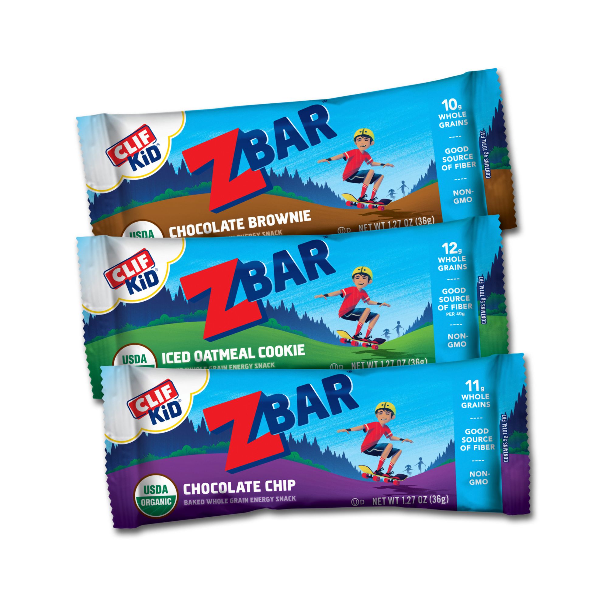 Crafted specially for active kids, Zbar Soft-Baked Energy Snack Bars are lunchbox-friendly granola bars with a chewy, soft-baked texture and a taste that kids love. Individually wrapped snacks made with quality ingredients like wholesome organic rolled oats, the Zbar chewy granola bars in this variety pack have 11 to 12 grams of whole grains per bar and help give active kids the energy to keep going and exploring. Zbar Chocolate Chip, Iced Oatmeal Cookie, and Chocolate Brownie Soft-Baked Energy Snack Bars also are USDA Organic Certified, non-GMO, and kosher, and they contain no high-fructose corn syrup and no artificial flavors, colors, or preservatives. Adventure needs fuel, and Zbar (formerly CLIF Kid Zbar) is a delicious, soft-baked energy snack bar in a variety of yummy flavors made with energizing, organic whole grain oats to help fuel kids during play.