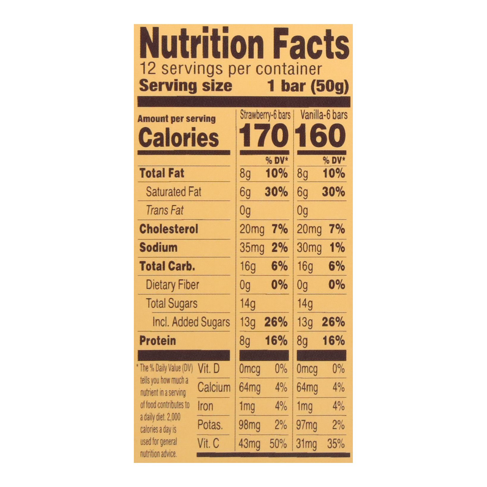 12 Individually wrapped bars, with six vanilla and six strawberry