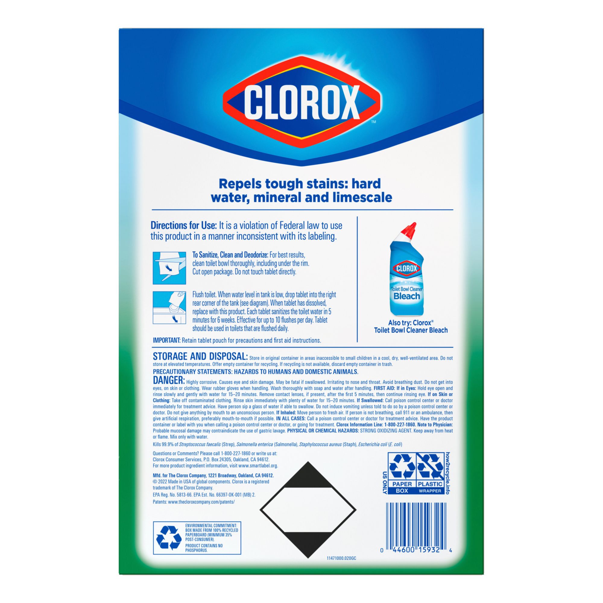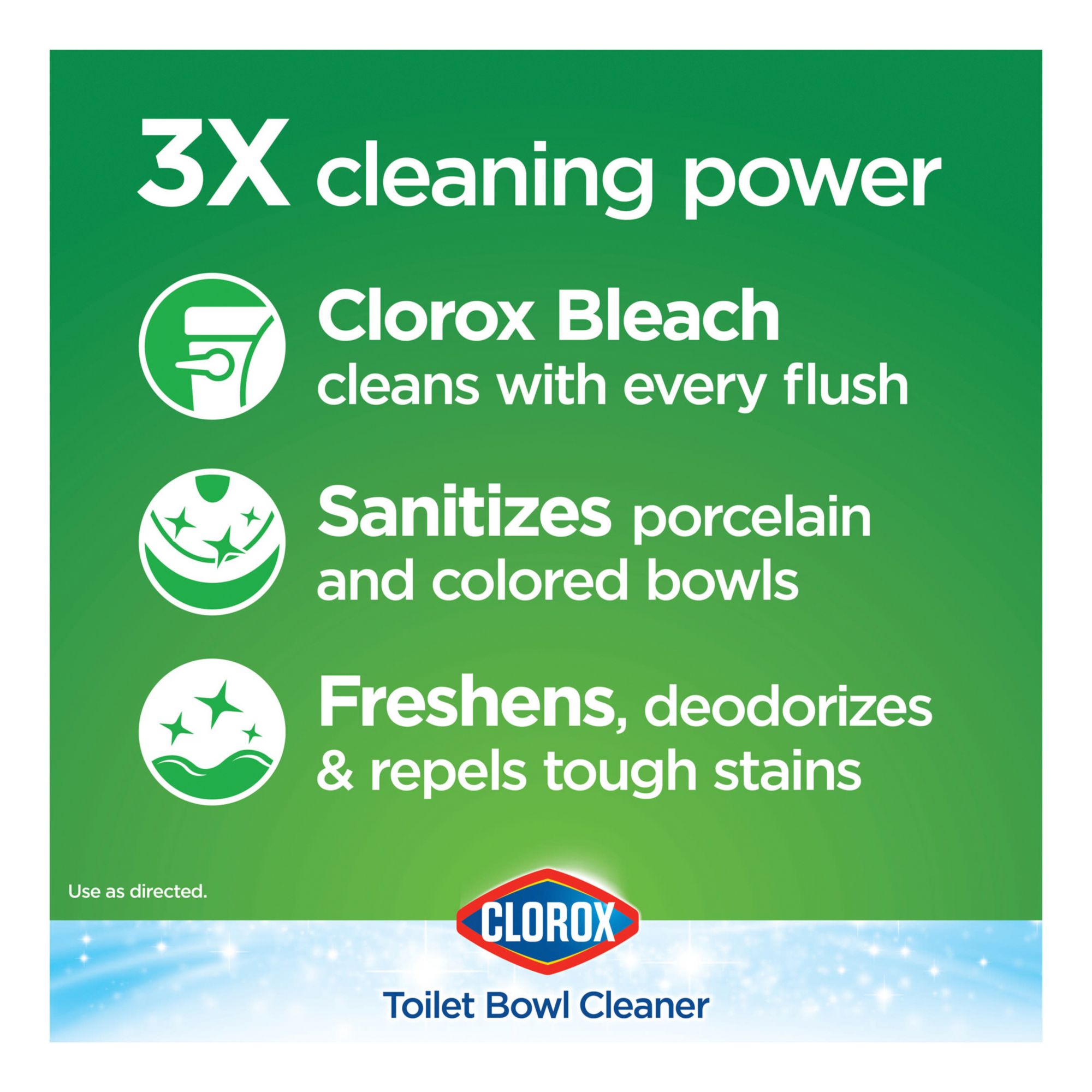 Clorox Ultra Clean Toilet Tablets kill 99.9% of bacteria and deodorizes your toilet with the power of Clorox bleach. This toilet bowl cleaning tablet, effectively cleans and prevents stains with each flush, eliminating the need to scrub every time. Each tablet delivers a long-lasting bleach clean and is good for up to 3 months. Simply drop a tablet into your toilet tank to continuously sanitize, deodorize and clean your toilet every time you flush. The dissolvable cleaning tablets help prevent tough stains and removes hard water, mineral deposits and limescale stains. Keep your toilet bowl sparkling fresh and ultra clean with no mess and no fuss with the help of Clorox Ultra Clean Toilet Tablets.