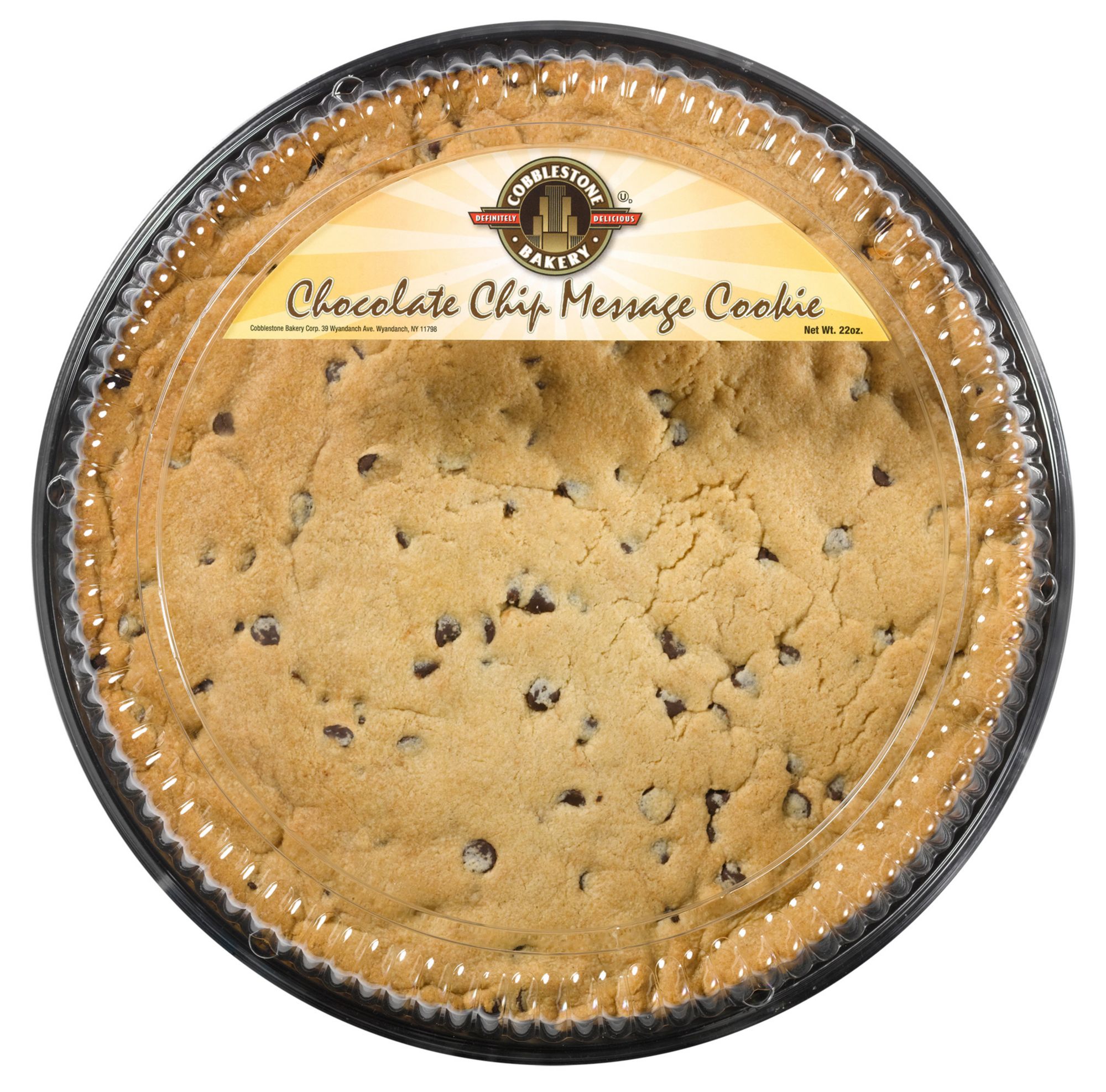 Whether it's for a birthday, holiday or other special occasion, the Cobblestone Bakery Chocolate Chip Message Cookie is a delectable way to get your point across to family, friends or co-workers. An ideal alternative to serving cake, it's simple to decorate and slice for parties, events or as a special snack.