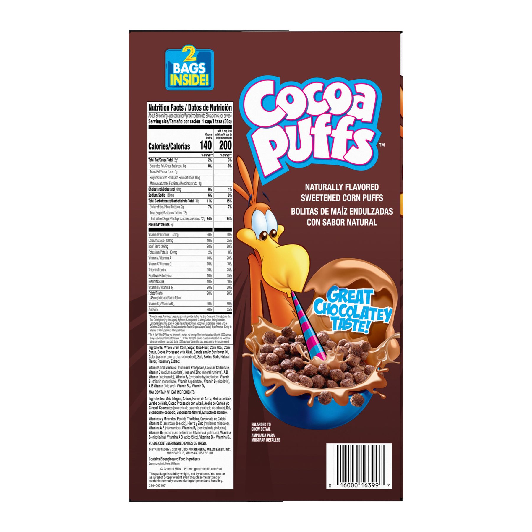 Start your day right with Cocoa Puffs Chocolate Cereal. General Mills makes sure your first meal of the deal has the best first ingredient: whole grain. Turn regular milk into chocolate milk by pouring it onto a bowl of Cocoa Puffs, making breakfast or snack time a blast.