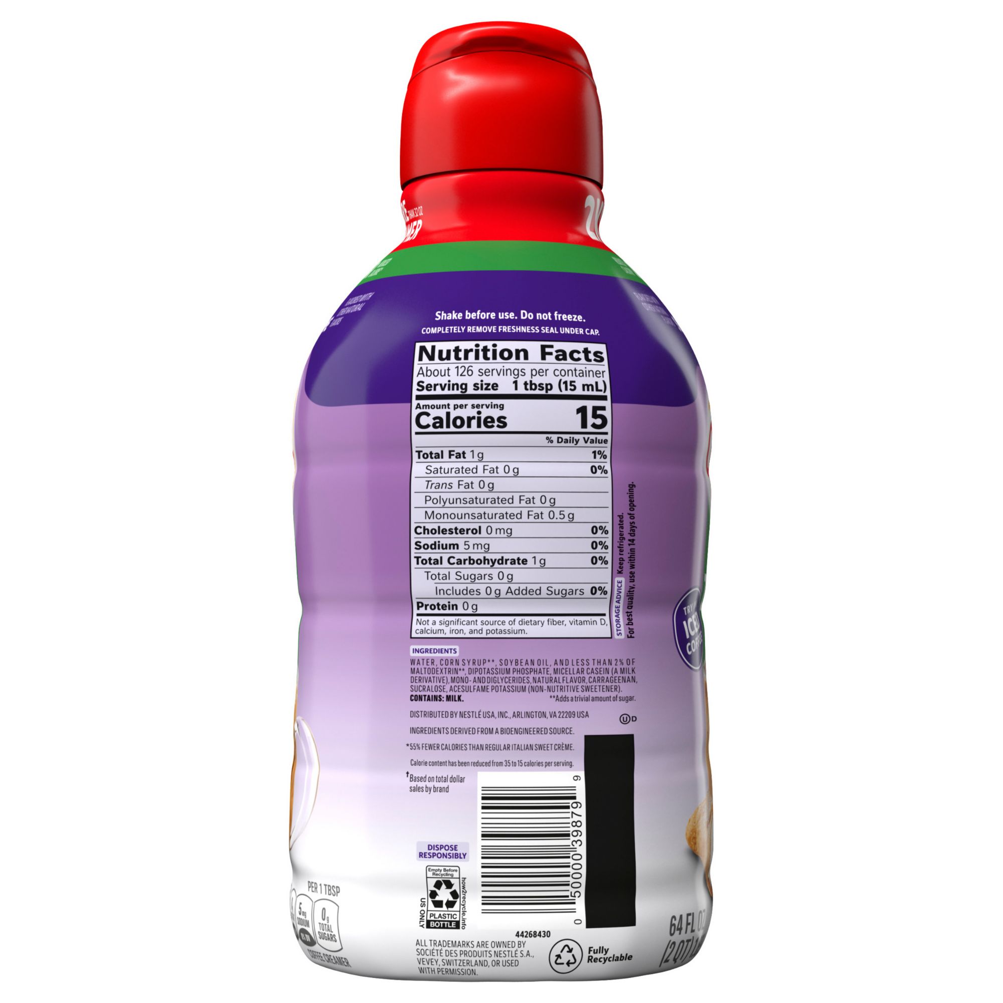 Coffee Mate Italian Sweet Creme Flavored Zero Sugar Coffee Creamer, 64 oz.