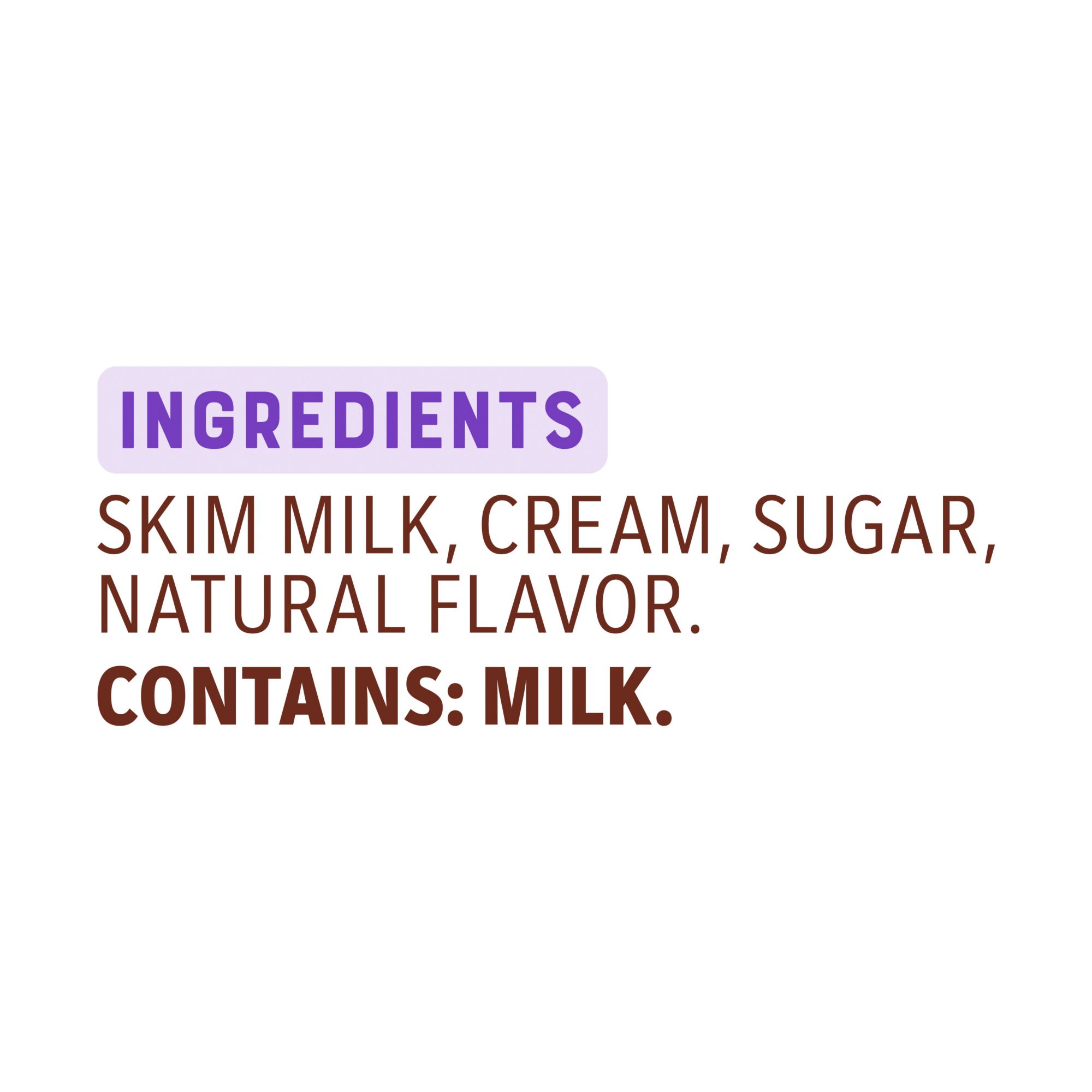 Ingredients: Skim Milk, Cream, Sugar, Natural Flavor.