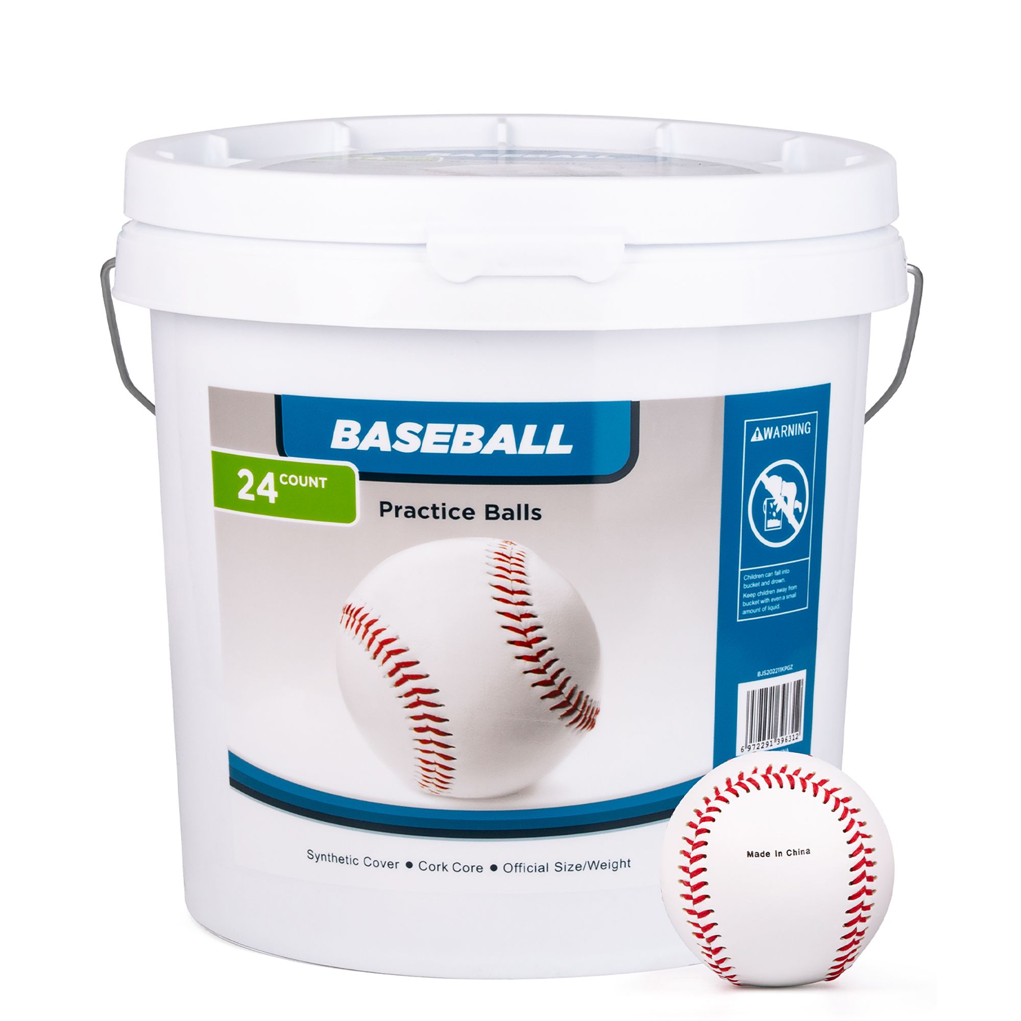 The Coinus Baseballs are made with a solid cork core and PVC leather cover threaded with red raised seams. The included bucket is light, portable and sturdy.