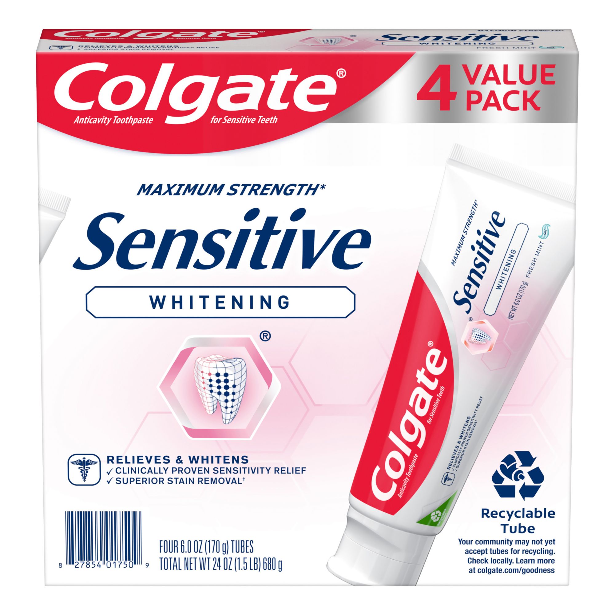 Colgate Sensitive Whitening Toothpaste, Cavity Protection Mint Toothpaste Gel, 4 pk./6 oz.