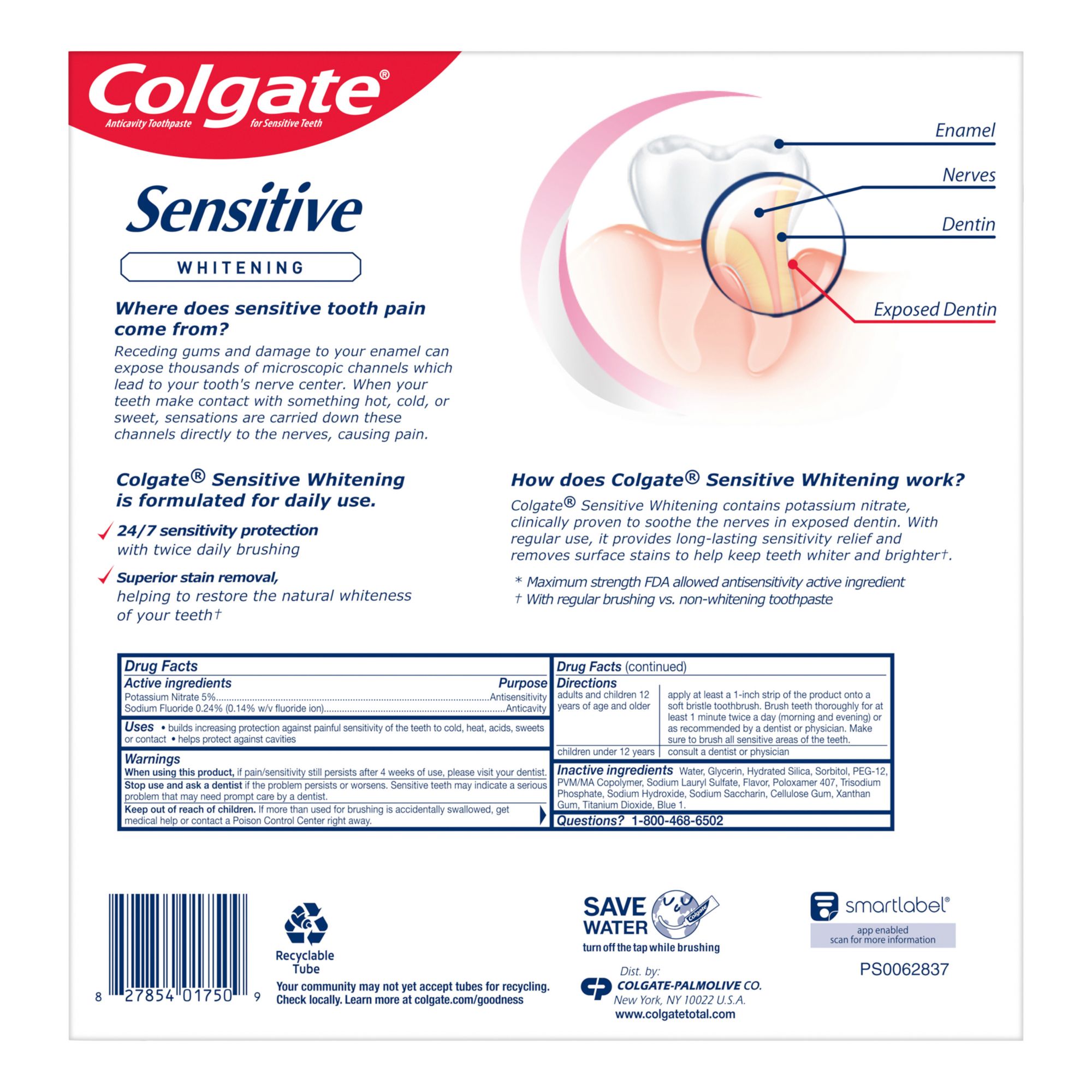 Colgate teeth whitening sensitive toothpaste builds protection against future sensitivity (with continued use and twice-daily brushing)